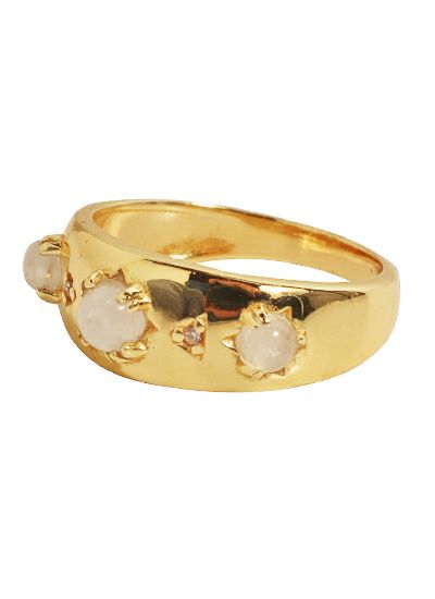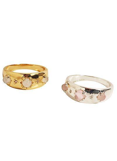 綺麗な天然石を3つ並べたリング。付けるだけで指元がさりげなく華やかになります。お手持ちのリングとの重ね付けもオススメです◎
