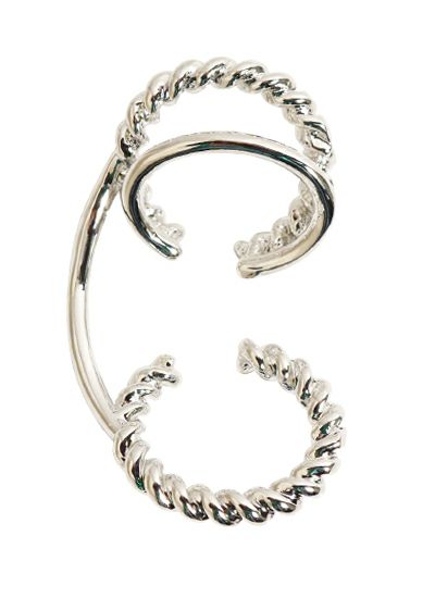 顔まわりでくるくる描くらせん状のラインが存在感があります。シンプルながらどこかスタイリッシュなムードを引き立てるデザインのイヤカフです。