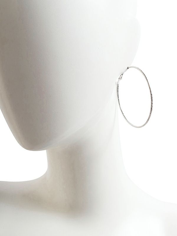 シンプルなデザインのフープピアス。存在感のある大ぶりサイズでどんなスタイルにも合わせやすく、華奢なフープがこなれた大人な印象です。さりげないキラッと感と軽量で付け心地◎。