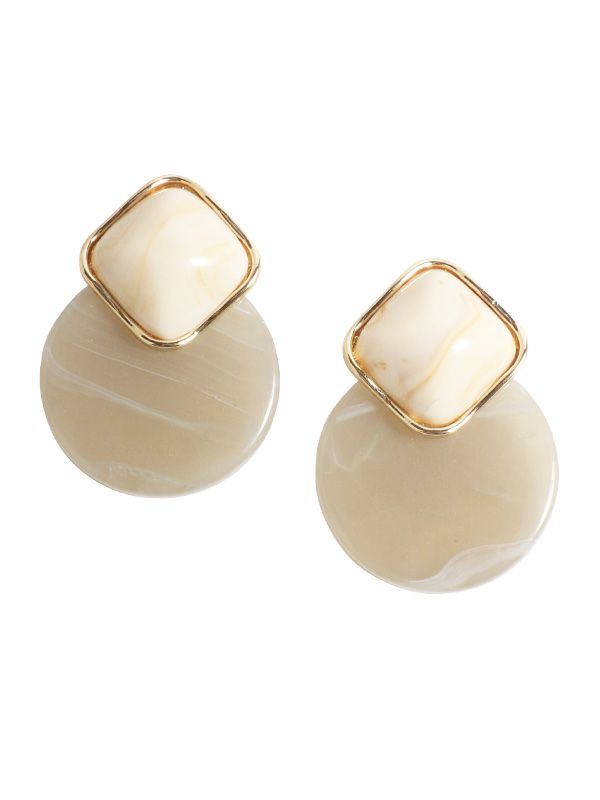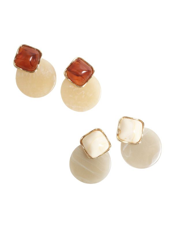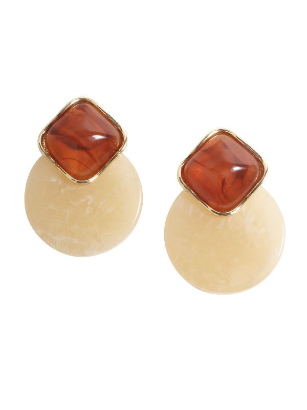 四角と丸のモチーフが重なったデザインのピアス。ヴィンテージ感があり、レトロなコーデにもよく合います。落ち着いた色味で大人の女性におすすめのひと品です。