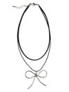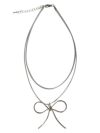 リボンモチーフが目を惹くネックレス。レザー調の紐を使用することで、チェーンとは異なる甘辛ミックスな印象を与え、チョーカー感覚で楽しめます。シンプルな装いにプラスするだけで、こなれた雰囲気に。お持ちのネックレスとの重ね付けで、より個性的なスタイリングも楽しめます。