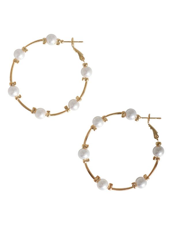 ゴールドのフープのラインにパールをふわりと浮かべたデザイン。さりげない立体感を持たせたデザインで上品な印象に。オケージョンのスタイリングにも活躍するピアスです。