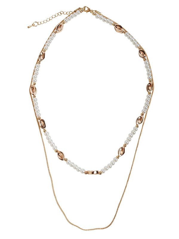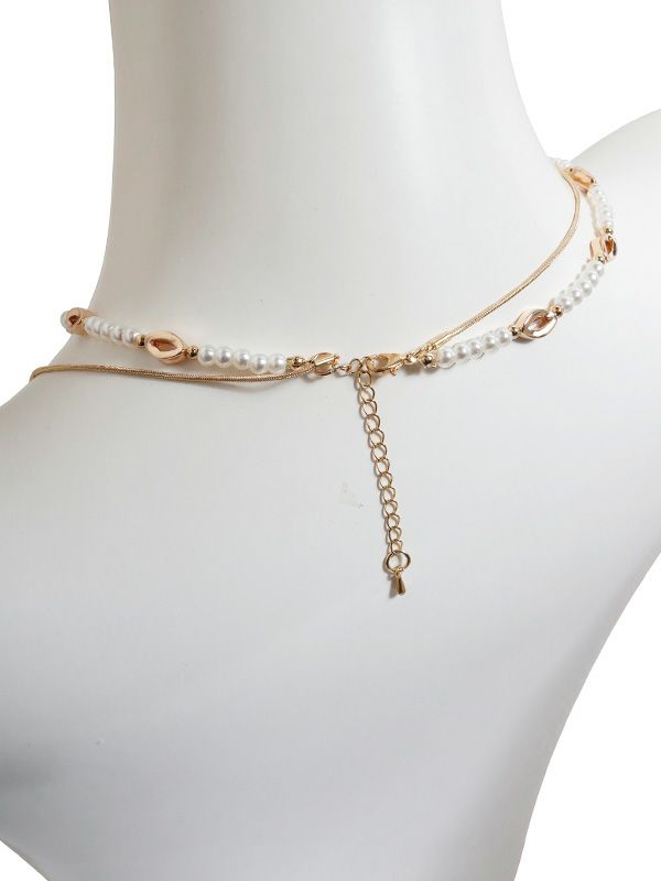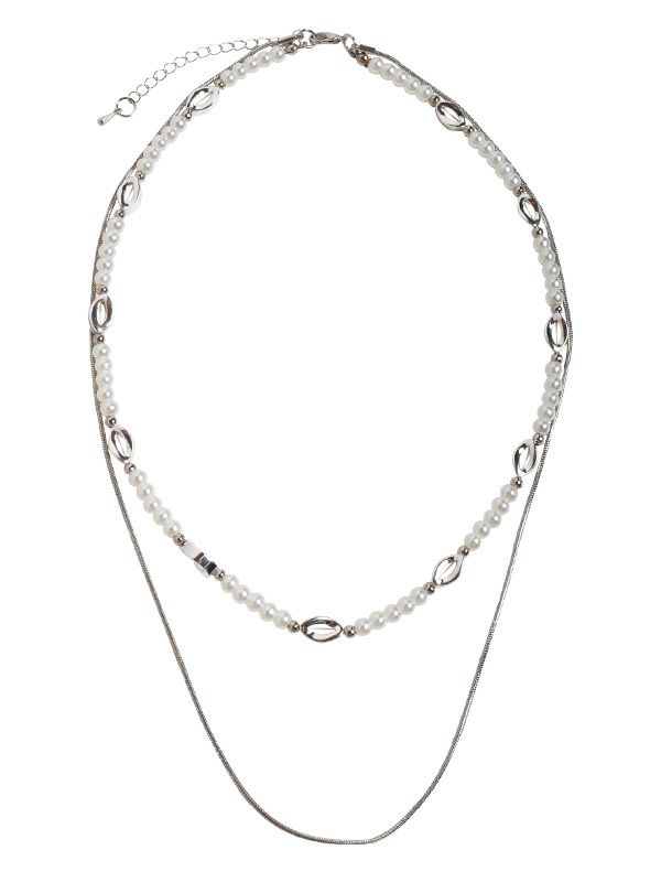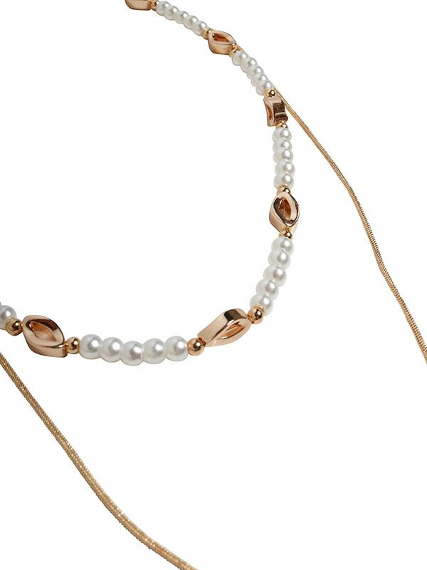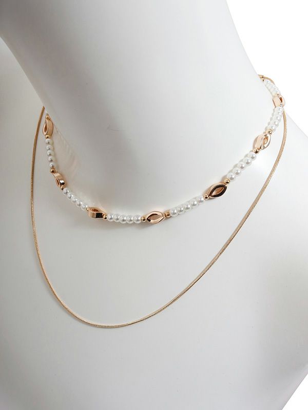 上品な輝きを放つパールビーズと、ラグジュアリーさを添えるゴールド・シルバーパーツのネックレスが2連になったひと品。繊細ながらも存在感のある組み合わせが、日常の装いに凛とした印象を添えてくれます。
