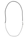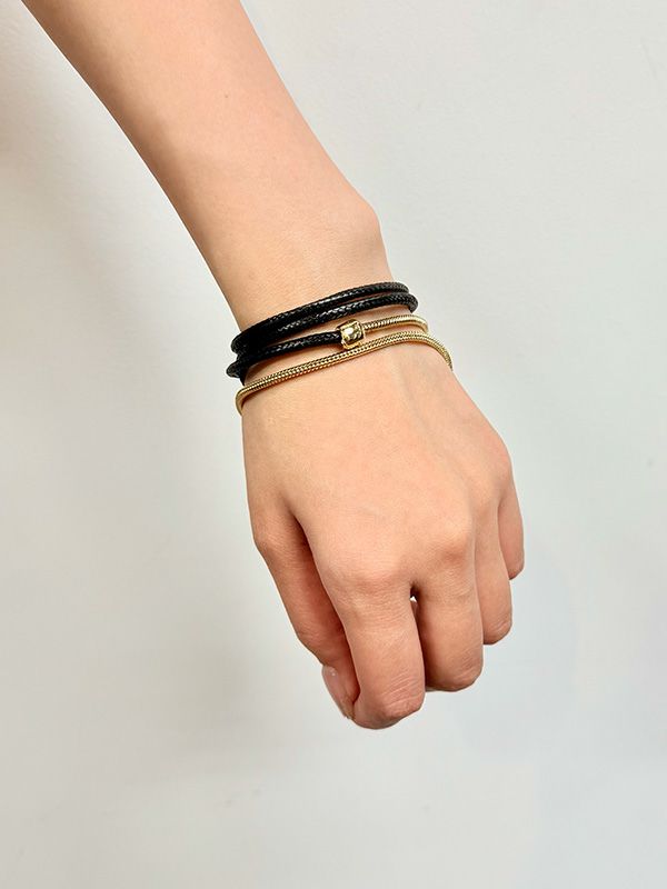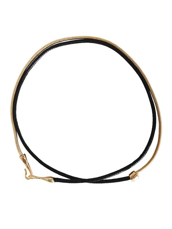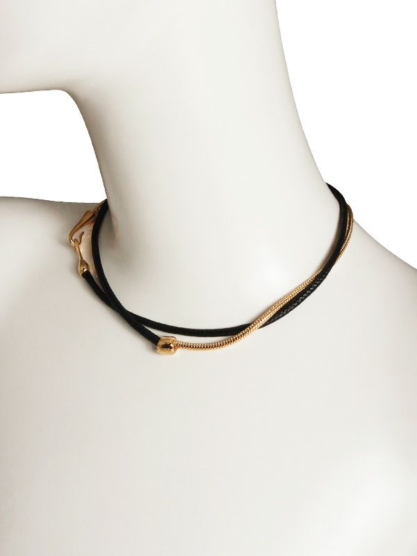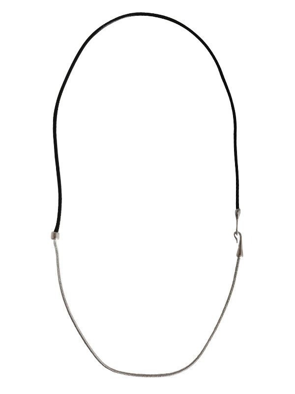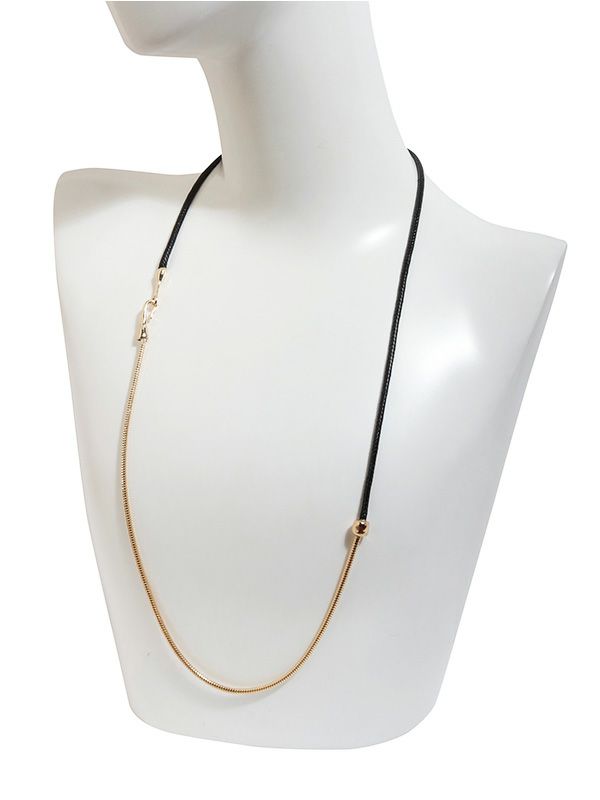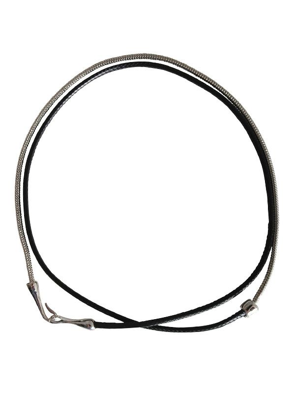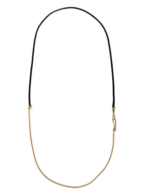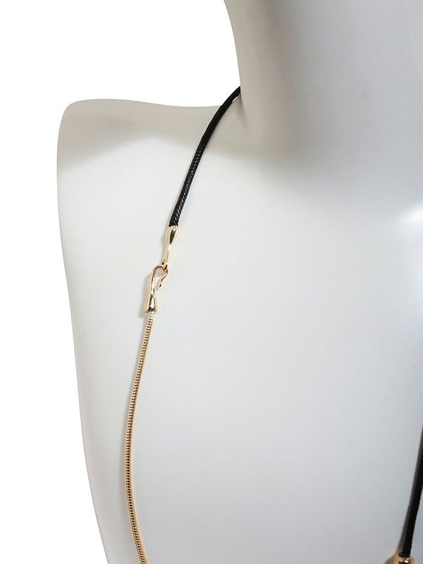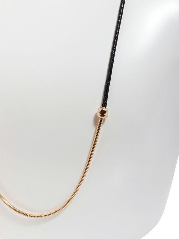 異素材コンビとフック仕様の留め具でカジュアルさをプラスしたロングネックレス。2連ネックレスにしたり、どの部分が前になっても様になるデザインなので、その日の気分やコーディネートに合わせて様々な表情をお楽しみいただけます。長さが合う方は、ぐるぐる巻いてブレスレットとして使うのもおすすめです。