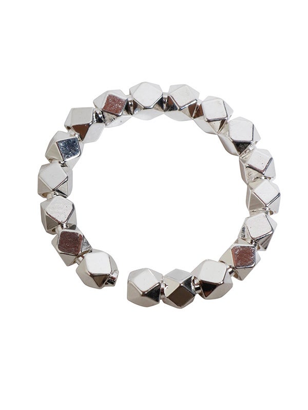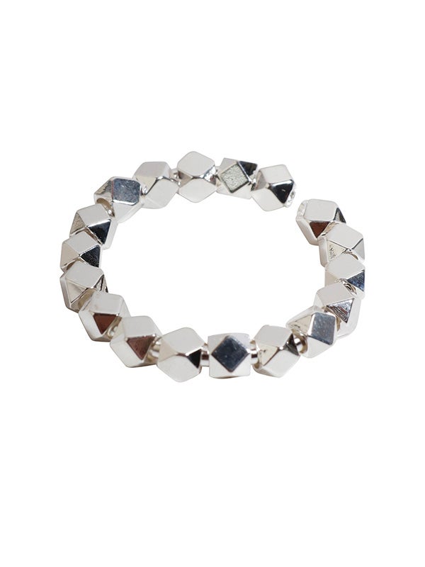 こちらのシルバービーズリングは、多角形のデザインと美しいビーズが調和したユニークなアイテム。シンプルでありながら洗練された印象を与え、どんなコーディネートにもぴったりマッチします。モダンなジオメトリックデザインが、指先に上品なアクセントを加えます。