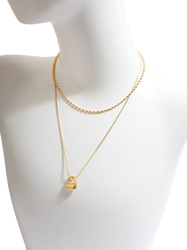 2連デザインが魅力的なネックレス。長めのチェーンにはモチーフ、短めのチェーンは細かいリンクでシンプルながら洗練された印象に。ゴールドとシルバーの2色展開で、カジュアルにもエレガントにも合わせやすいアイテムです。