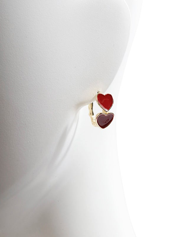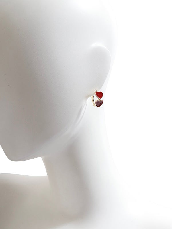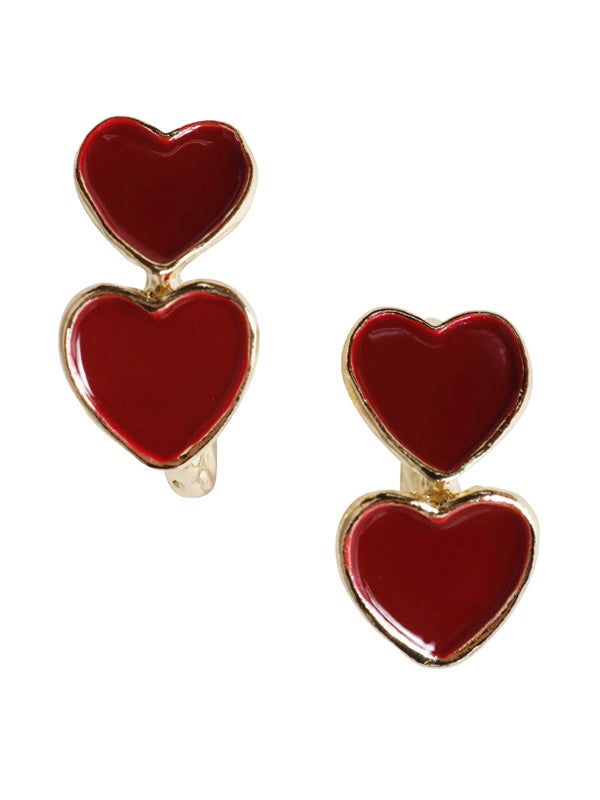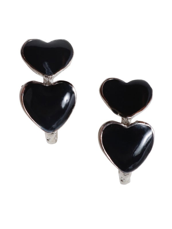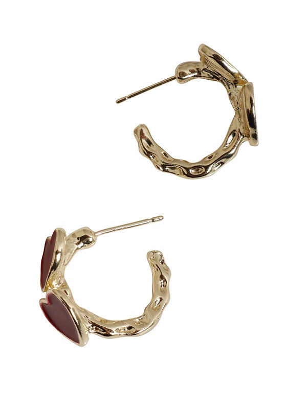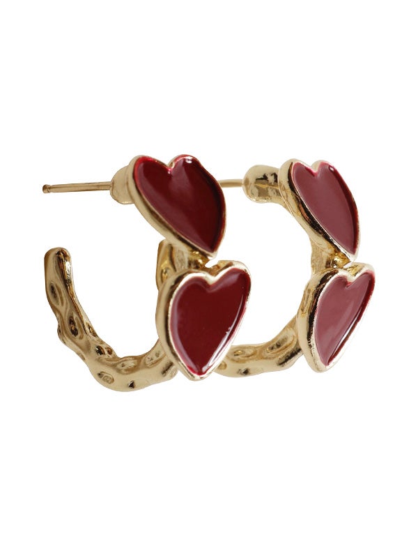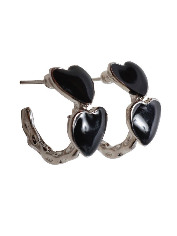 ゴールドは赤いハート、シルバーは黒いハートで、異なるカラーが引き立つデザイン。リング状に配置されたハートが、立体的なフォルムで見る角度によって異なる表情を楽しめます。シンプルでありながらも、存在感のあるアクセサリーとして、どんなコーディネートにもぴったりのアイテムです。