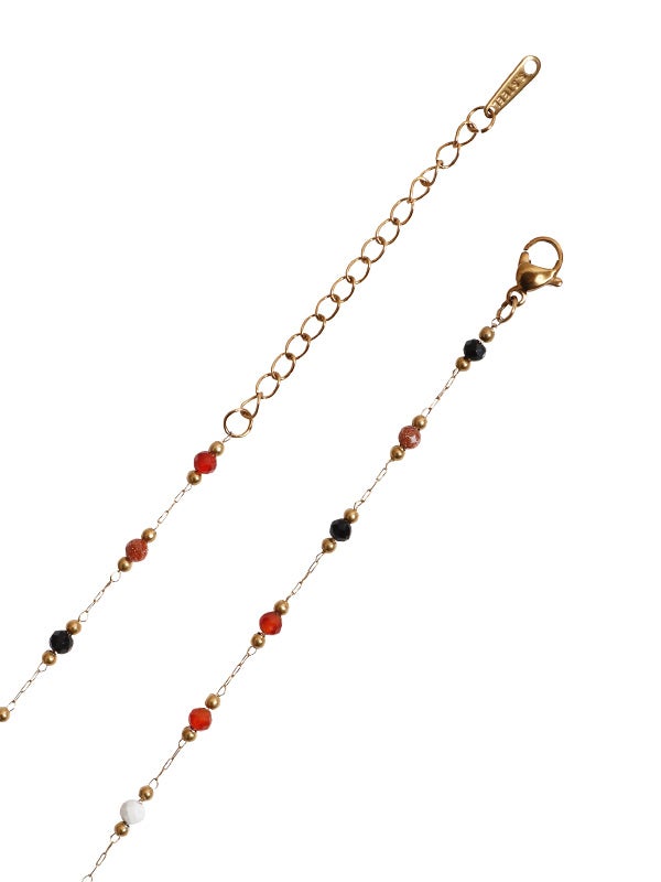 ラメ入り、マット、艶やかな質感が特徴的な小さなビーズを使った繊細なネックレス。落ち着いたトーンのカラーで仕上げ、シンプルながらも華やかさと上品さを兼ね備えています。軽やかな着け心地で、カジュアルからエレガントなスタイルまで幅広く活躍するアイテムです。