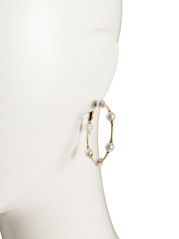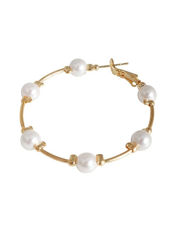 ゴールドのフープのラインにパールをふわりと浮かべたデザイン。さりげない立体感を持たせたデザインで上品な印象に。オケージョンのスタイリングにも活躍するピアスです。