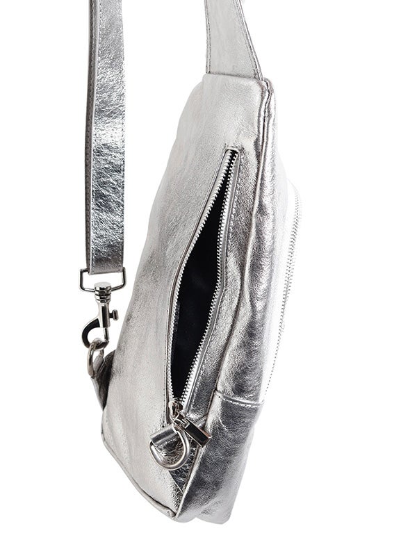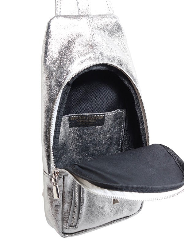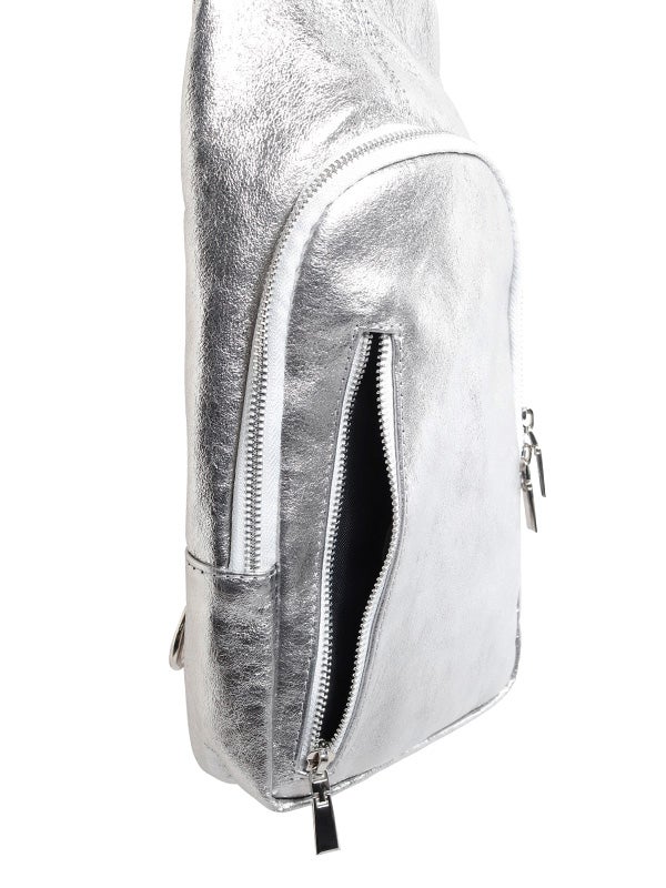 スタイリッシュに持てるボディバッグデザインのショルダーバッグ。表側にはマチ付きのファスナーポケットを配置し、スマートフォンやパスケースなど、すぐに取り出したい小物の収納に便利です。立体的なシルエットで、中身が見やすく取り出しやすい仕様です。メタリック加工のレザーの質感がモードな雰囲気を漂わせ、カジュアルスタイルにはもちろん、きれいめスタイルの外しアイテムとしてもおすすめです。