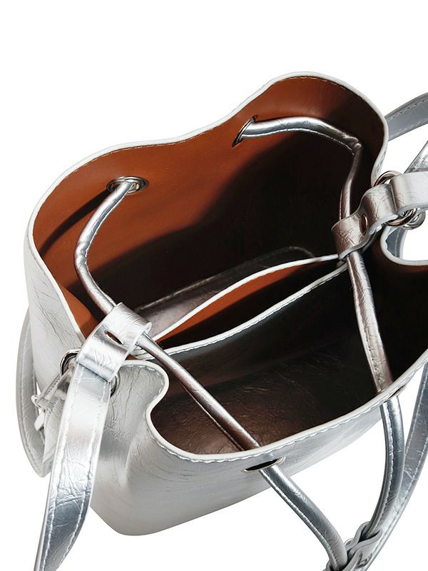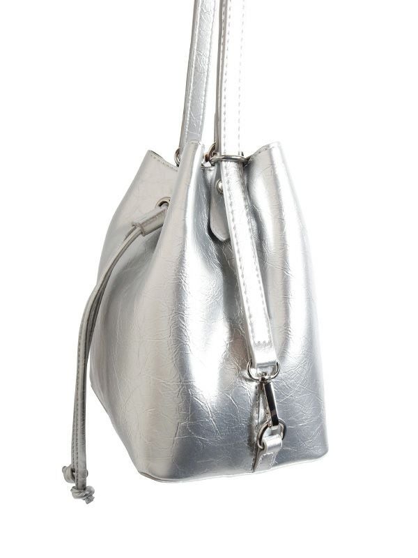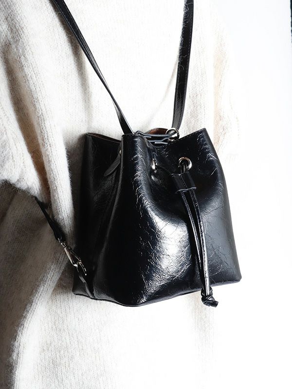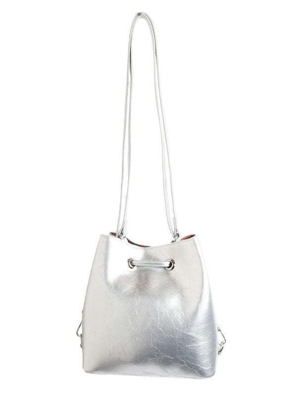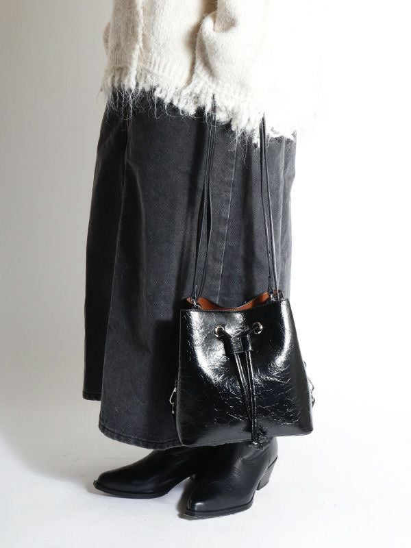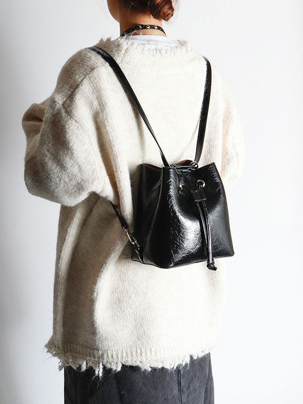 巾着BAGのデザインを施した遊び心のあるショルダーバッグ。程よいアクセントになり、シンプルなコーディネートにも馴染みつつ個性をプラスしてくれます。ショルダーバッグ、ナップサックとしても使える2wayデザインです。スマホやミニ財布、コスメなど必要な物が入るサイズ感で使い勝手がよく、カジュアルからモードまで、さまざまなスタイリングにマッチする万能バッグです。