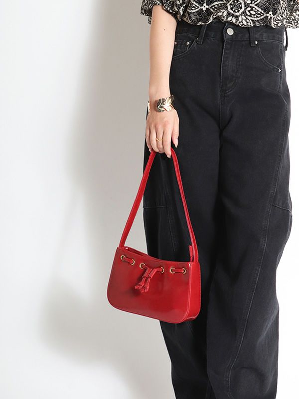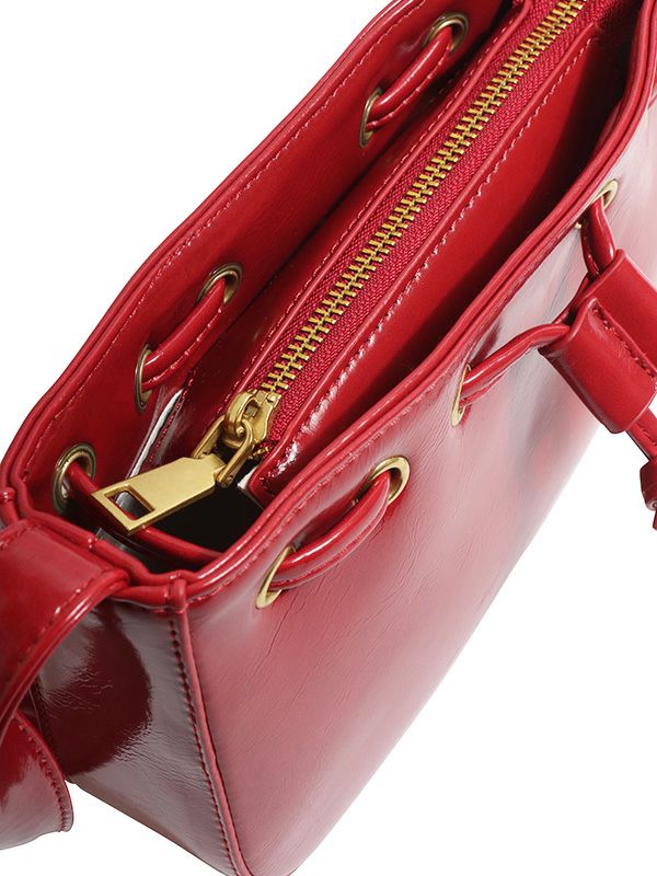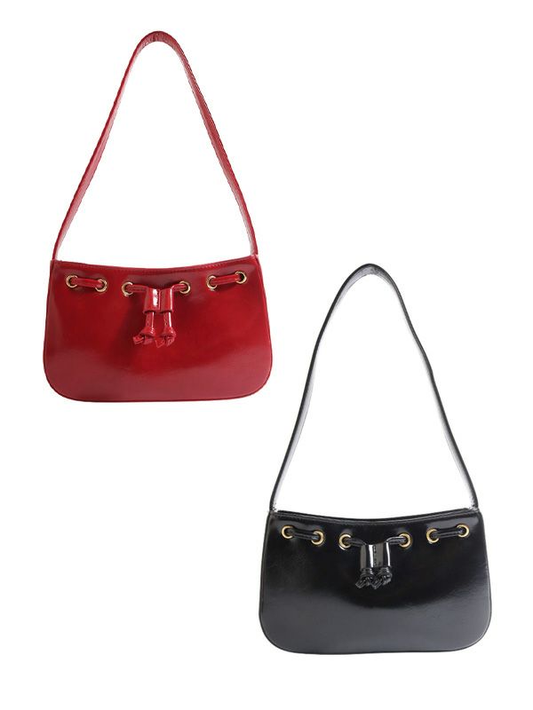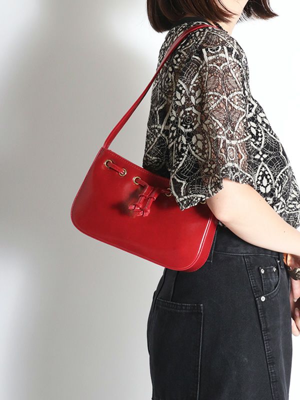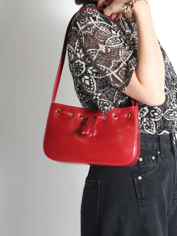 レトロな雰囲気に、目を惹くゴールドカラーのアイレットデザインがポイント。お財布やスマートフォン、ポーチ等、日常の必需品を入れるのにちょうどよいサイズ感です。コーデの差し色にしたり、ロマンティックな女性らしいコーデにあえて合わせるのもおすすめのバッグです。