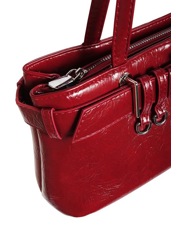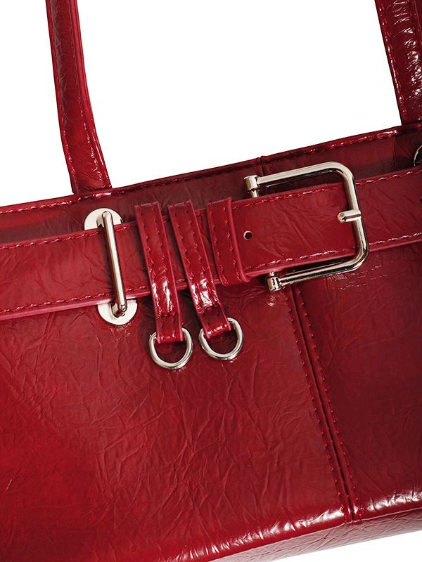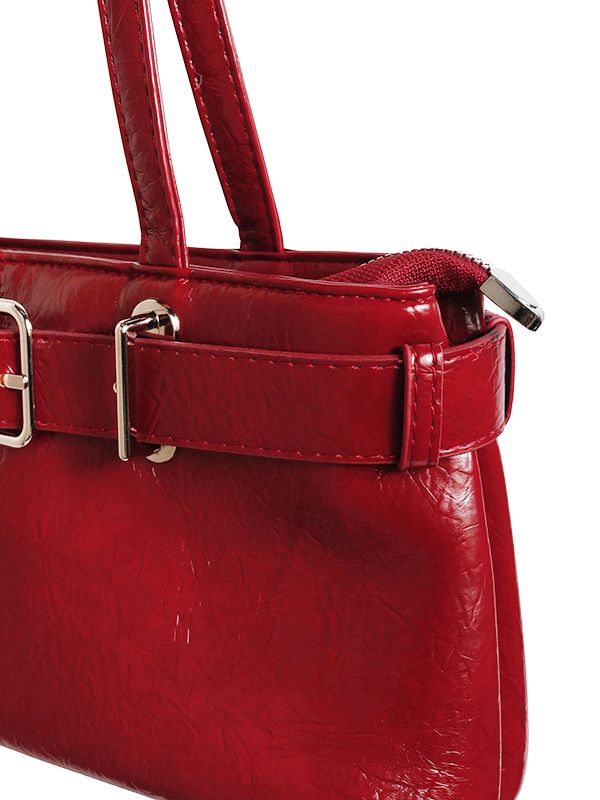 トレンド感と利便性を兼ね備えたショルダーバッグ。ツヤ感、ぱっと目を惹くベルトデザインがポイントです。そのまま肩にかけれるロングショルダーでお財布やスマートフォン、ポーチなどデイリーに使いやすい容量です。カジュアルなデニムスタイルはもちろん、きれいめなワンピースやスカートと合わせれば、上品なミックススタイルが完成します。