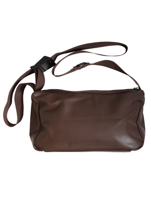 ベーシックカラーのシンプルなデザインでデイリーに活躍するバッグ。スポーティなデザインをレザーライクに落し込んでいるのでカジュアルすぎずにお使いいただけます。ショルダー部分のベルトで長さを調整して斜め掛けバッグや、ショルダーバッグとしても◎。