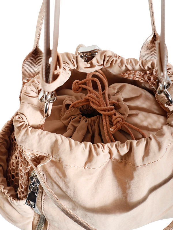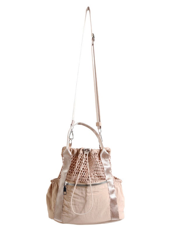 デイリー使いしたいアクティブなデザインが魅力のポシェット型メッシュバッグ。バッグ全体を畳んで収納できる便利なポケッタブル仕様。コンパクトに持ち運ぶことができ、普段使いはもちろん、旅行先などでも活躍。付属の巾着も付いている便利なアイテムです。