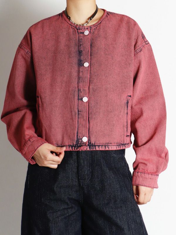 【NUMPH】ケミカル加工ノーカラーデニムジャケット