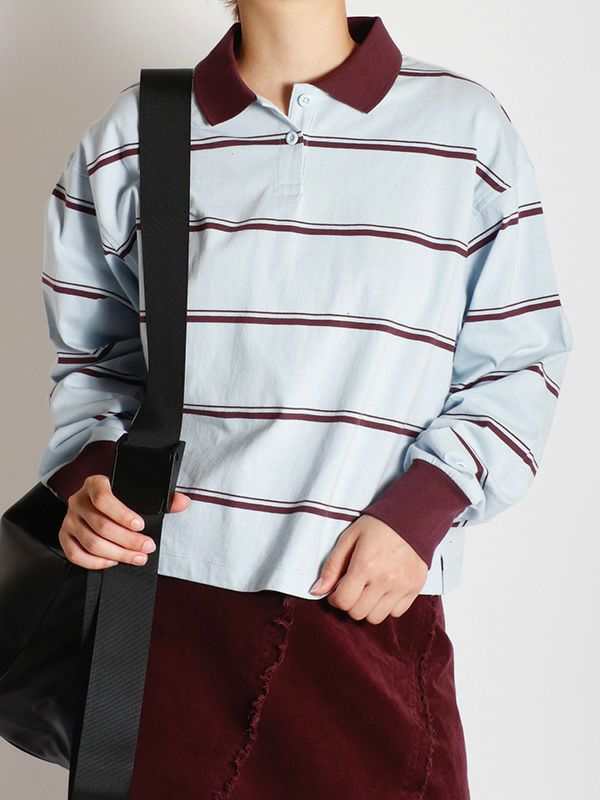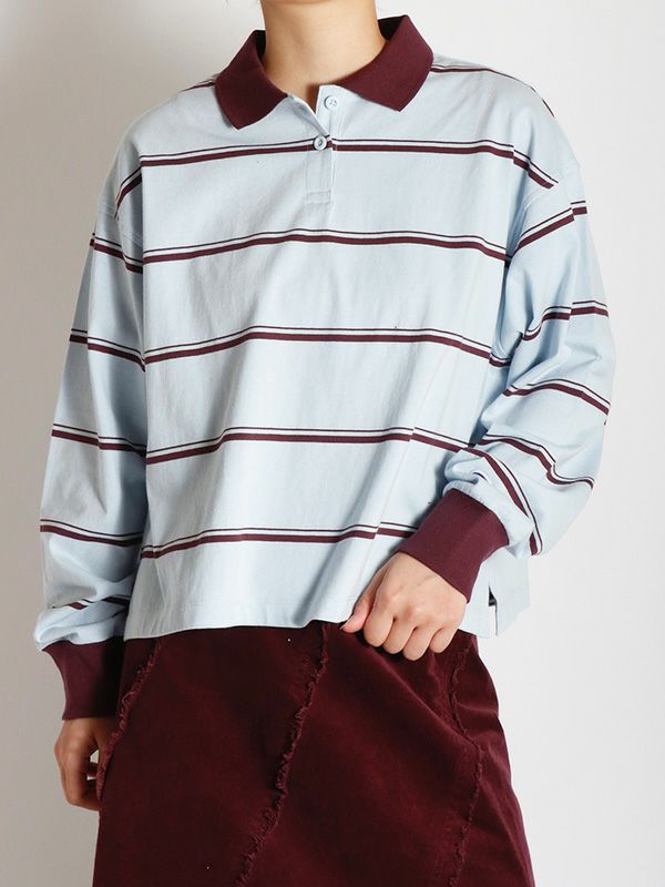 【CHAMPION】ボーダーロングスリーブポロシャツ