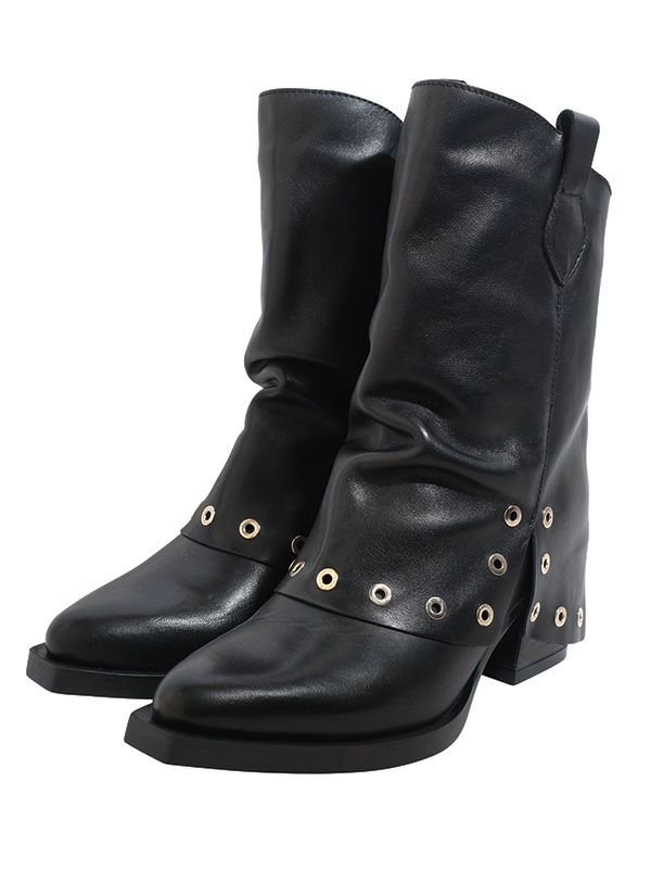 【ALL BLACK】ヴィンテージデザインロングブーツ