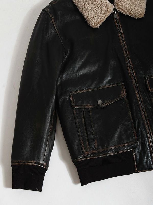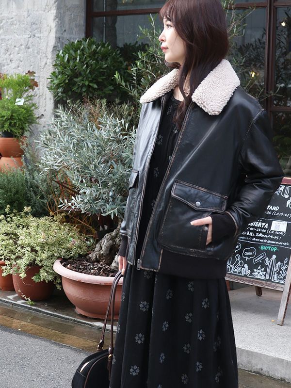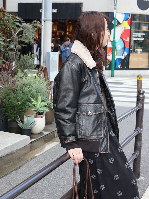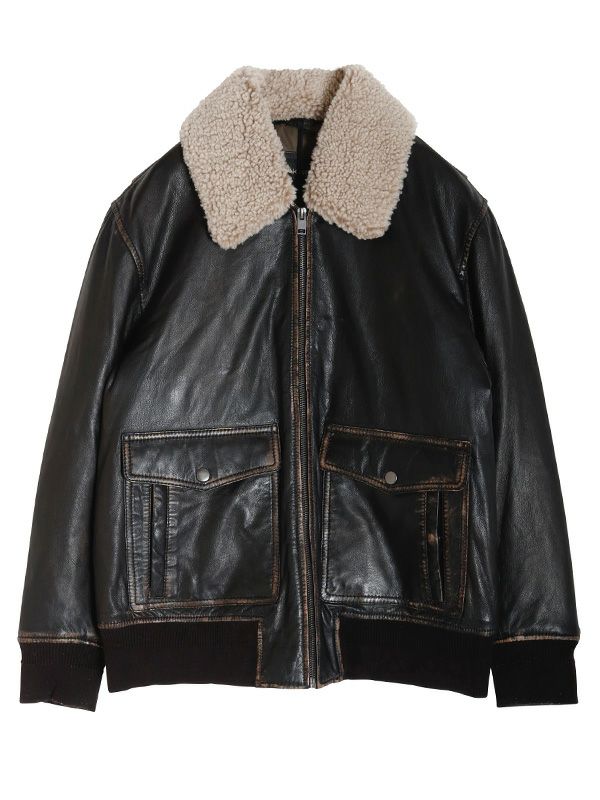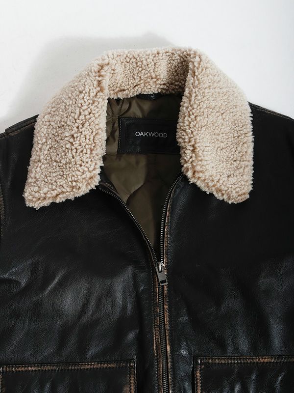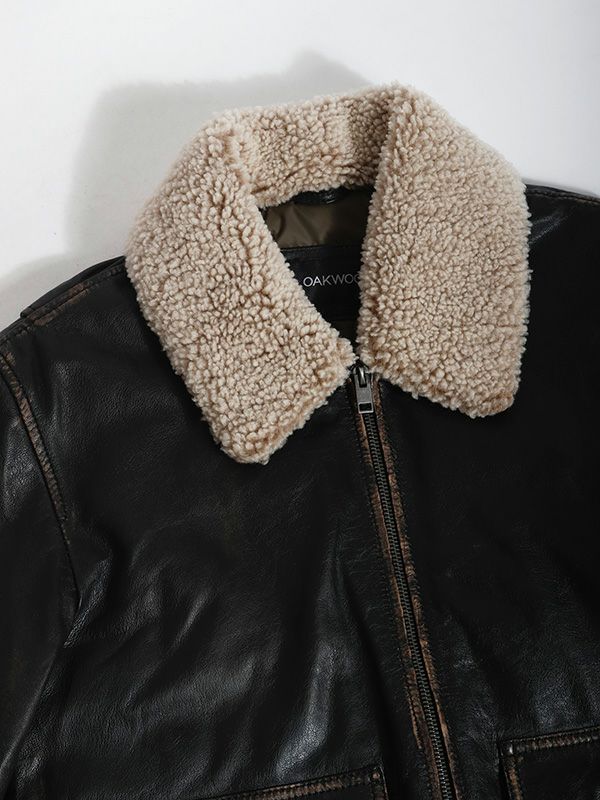 【OAKWOOD】ボア付け襟シープレザーブルゾン