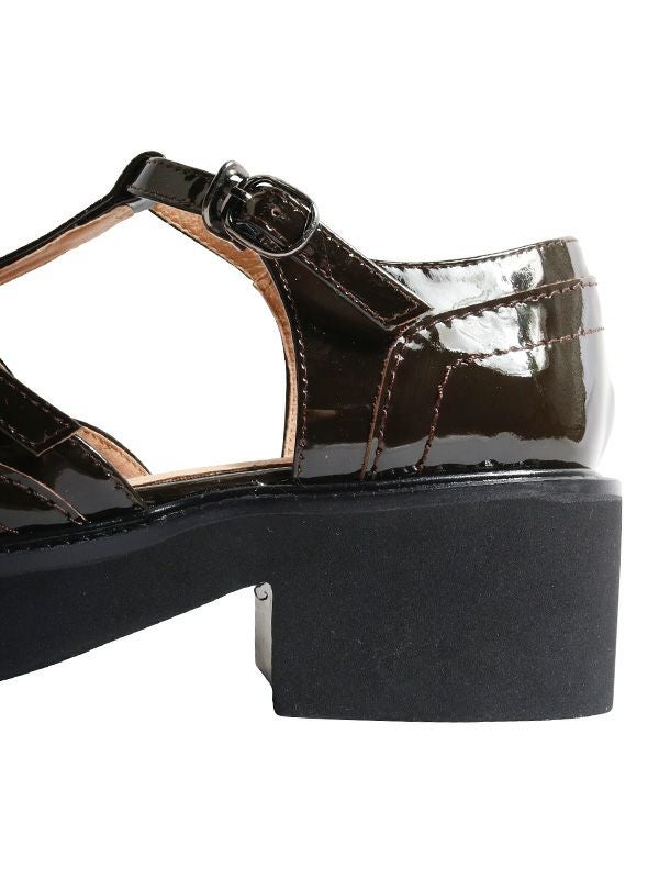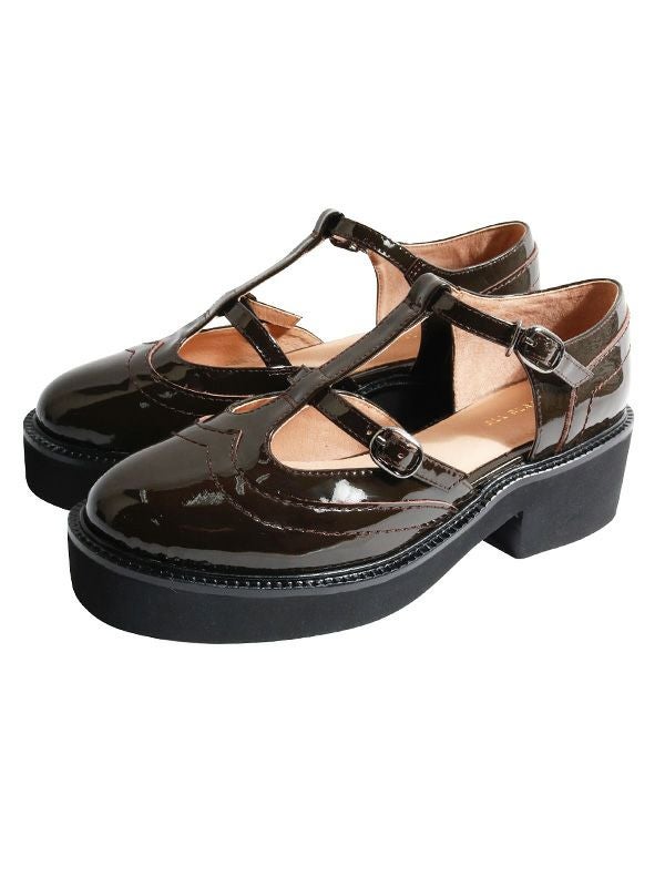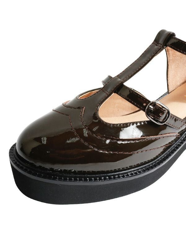 エナメル調のツヤ素材が特徴のTストラップパンプスは、足元をエレガントかつ華やかに彩ってくれる1足。ダブルのストラップディテールがアクセントになり、足元を美しく見せながら、しっかりとホールドしてくれます。きれいめなスカートやワンピースと合わせてフェミニンなスタイルに。スラックスやテーパードパンツと合わせれば、オフィスにも対応できる上品な印象を与えます。カジュアルなデニムスタイルにプラスして、足元に抜け感や上品さを加えるミックススタイルもおすすめです。