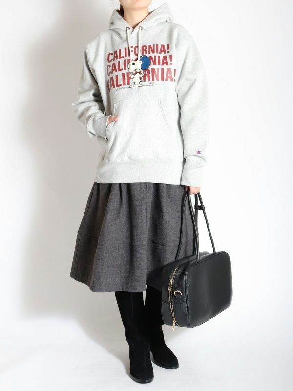 チャンピオンを代表する製法の「REVERSE WEAVE®(リバースウィーブ®)」。洗うほどにタフになり、着こむほどに独特の風合いや味が出る裏起毛素材を使用したフーデッドスウェットシャツです。コットン素材は環境に配慮して生産されたサステナブルなアメリカ綿を100%使用。本来は縦方向に使われる生地を横方向に使用する「REVERSE WEAVE®」製法によって縦の生地の縮みを防ぐと同時に、両脇に「EXPANSION GUSSET(エクスパンションガゼット)」を付けることで横の縮みへの影響を少なくし、動きやすさに配慮しています。SNOOPY(スヌーピー)で知られるPEANUTS(ピーナッツ)のチャンピオンオリジナルアイテムで、胸にアメリカンフットボールをモチーフにしたグラフィックを入れています。