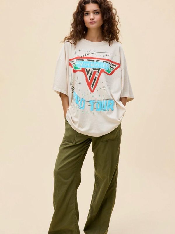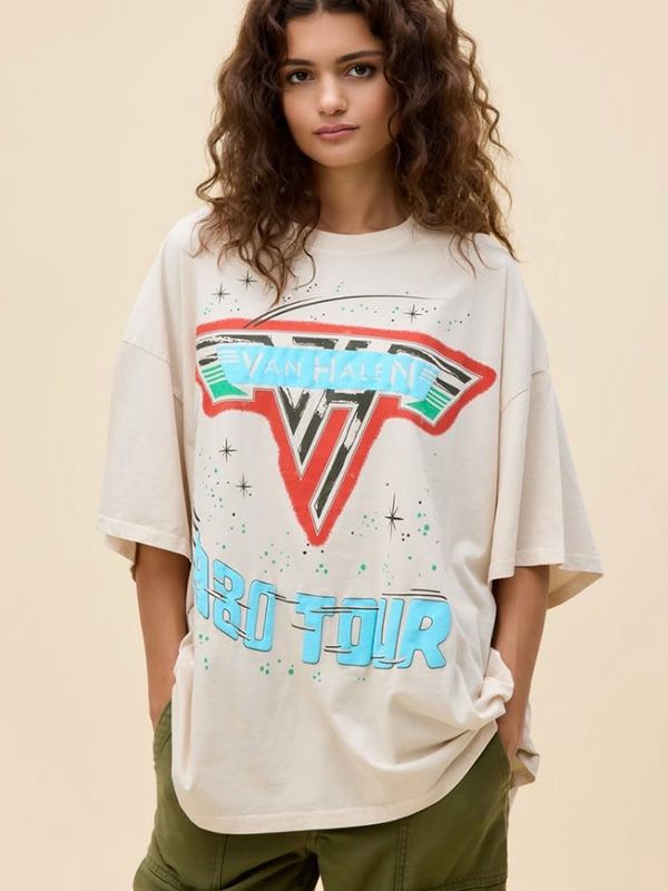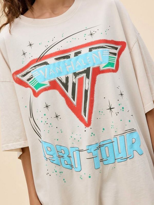 Van Halen’s / ヴァン・ヘイレンの象徴的なアイコンとバンドロゴに発砲プリントを施し、立体感を持たせたグラフィック。バンドの大成功した1980年のワールドツアーメモリアルTシャツのような雰囲気です。オーバーサイズ好きにはたまらないビッグシルエット、1枚でコーディネートに「こなれ感」をもたらしてくれます。ルーズな抜け感が出るように、柔らかなコットン100%の肌触りで独特の風合いが女性らしいシルエットで着ていただけます。
