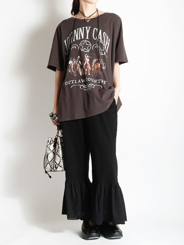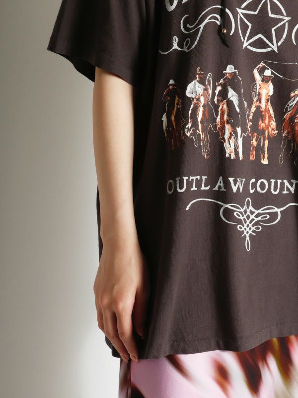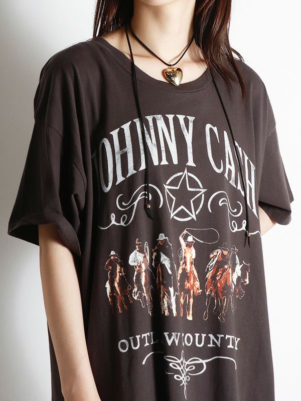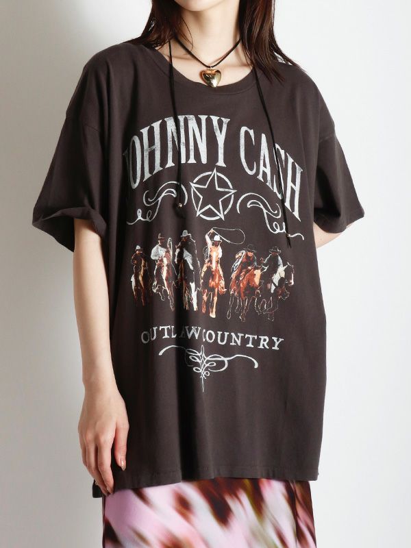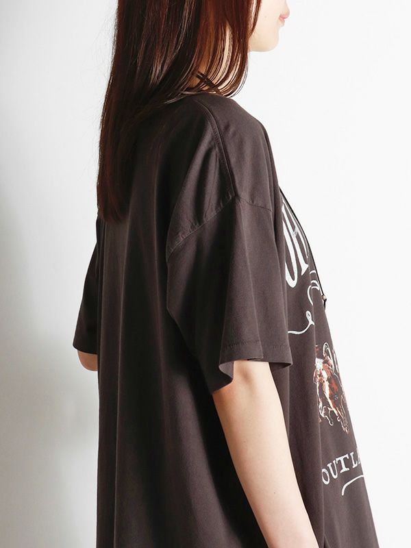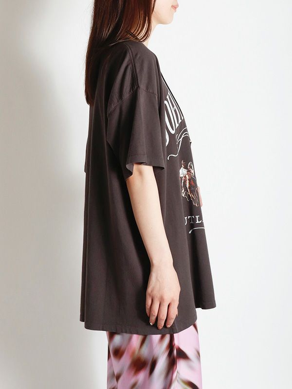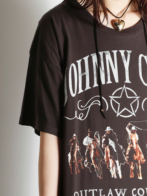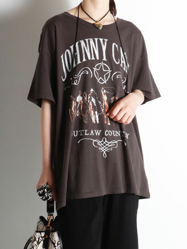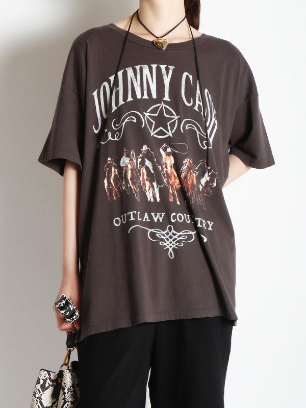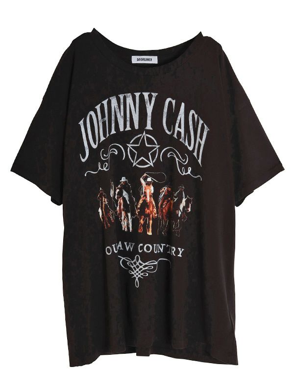JOHNNY CASH/ジョニー・キャッシュのもつオールドカントリーの雰囲気はそのままに、ヴィンテージ感ある風合いに仕上げたTシャツ。オーバーサイズ好きにはたまらないビッグシルエット、1枚でコーディネートに「こなれ感」をもたらしてくれます。DAYDREAMERならではの染色加工、ユーズド感のあるブラックカラー、程よく軽い素材でドレープが出る質感と、ルーズな抜け感が出るように柔らかな肌触りで独特の風合いに仕上げたTシャツです。