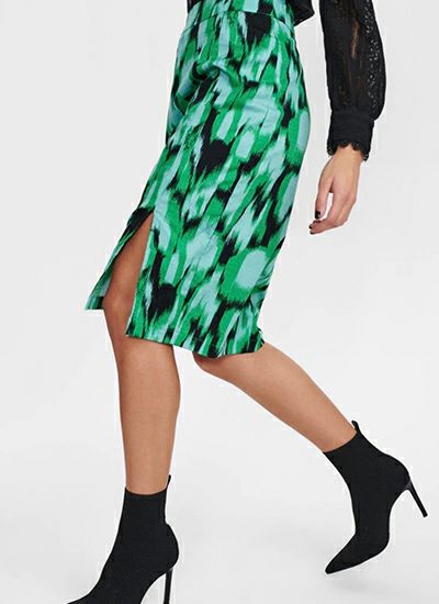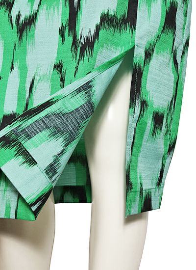 NUMPHより「色、柄」が特徴的なデザインのタイトスカート。さっぱりとした生地感でこれからのシーズンにピッタリなアイテム。フロントにスリットが入り、裏地付き。同柄ブラウスとのセットアップコーデもオススメです。