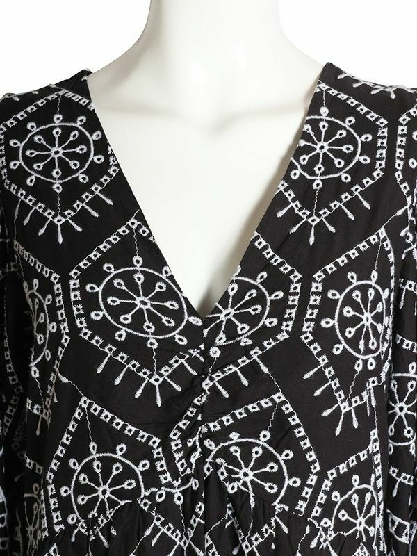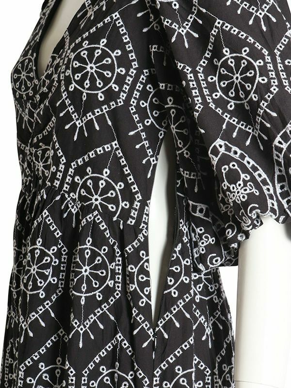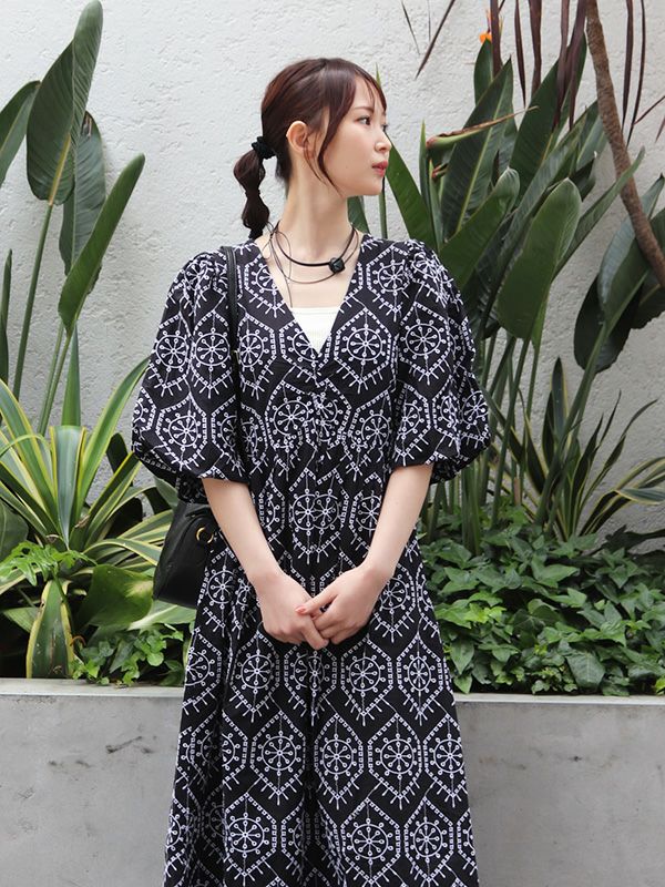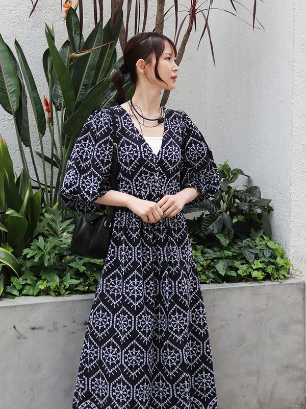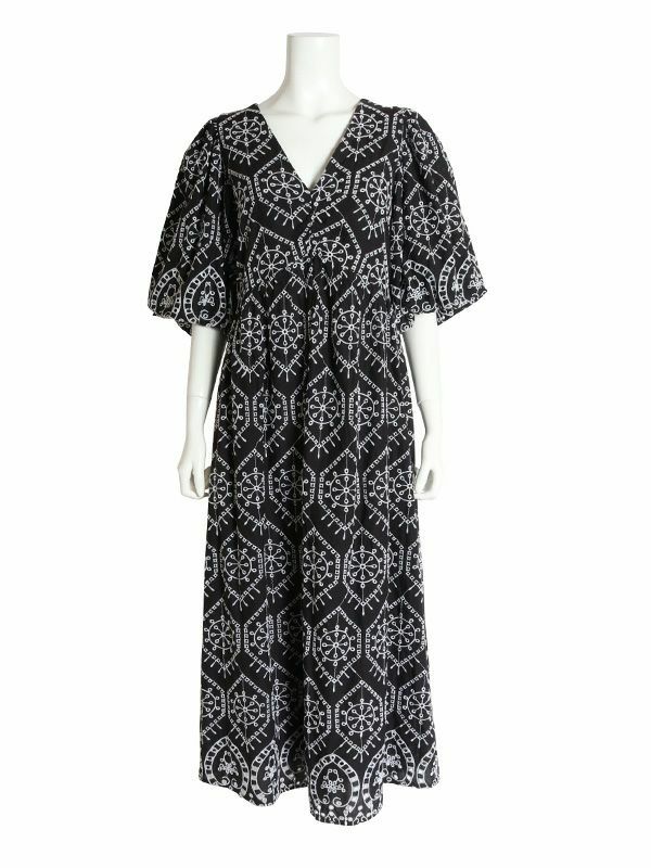 爽やかな綿100%素材に、配色で大胆刺繍が施されたセミフレアシルエットのワンピース。たっぷりギャザーを寄せたボリュームスリーブとデコルテのキレイ見えを叶えるVネックが女性らしいデザイン。ウエストラインやヒップラインを拾わないゆったりとしたサイズ感で、締め付けのない楽な着心地が叶います。華やかなノスタルジックな印象で1枚着や、レイヤードスタイルもお楽しみいただける大人のロマンティックムードを叶えるワンピースです。