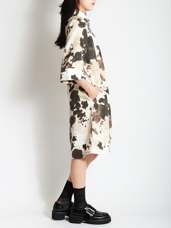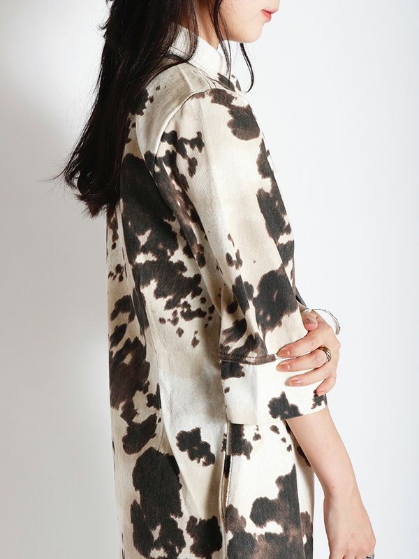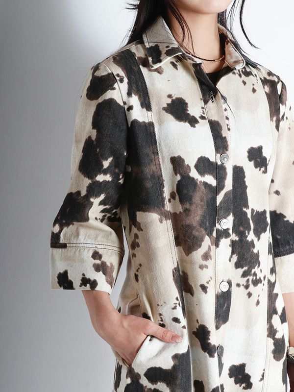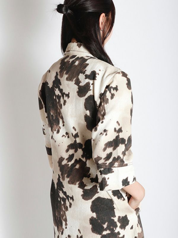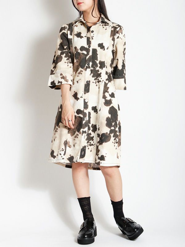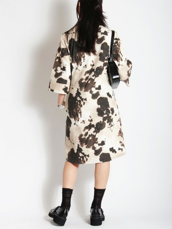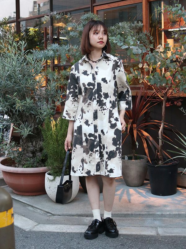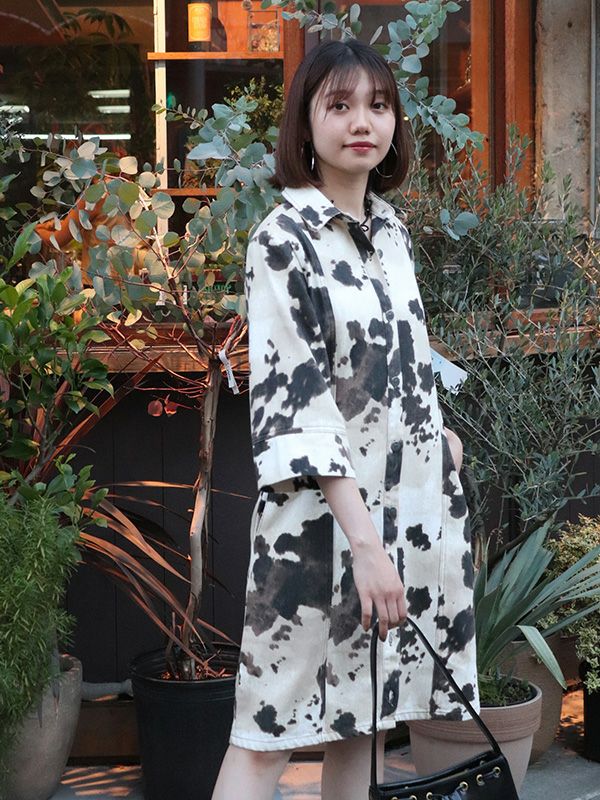 大胆なオンブレ模様が存在感があり、1枚でサマになるワンピース。7分袖x幅広めにとったスリーブデザインで、さりげない華やかさをプラス。視線を上へと導く切り替えが、腰の位置を高く見せてくれます。ウエストはすっきりと絞られており、自然なメリハリが生まれる美しいライン。足元はローファーやブーツでモードに、スニーカーでカジュアルに仕上げるのもおすすめです。ワンピースとしてはもちろん、羽織としても着用でき、幅広くレイヤードを楽しめる着回し力の高いアイテムです。