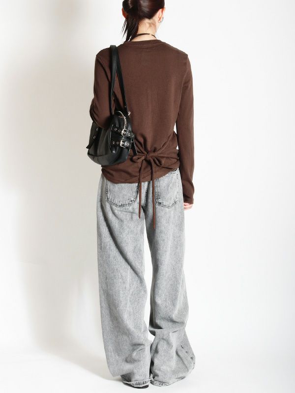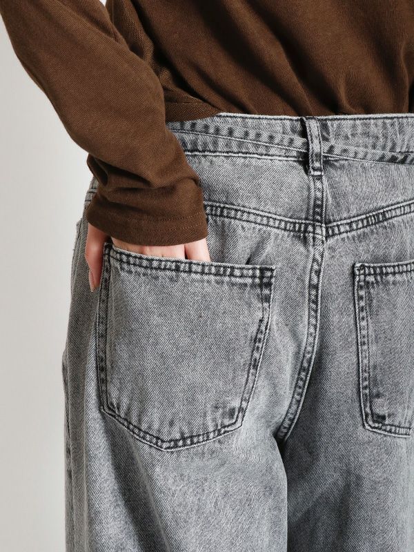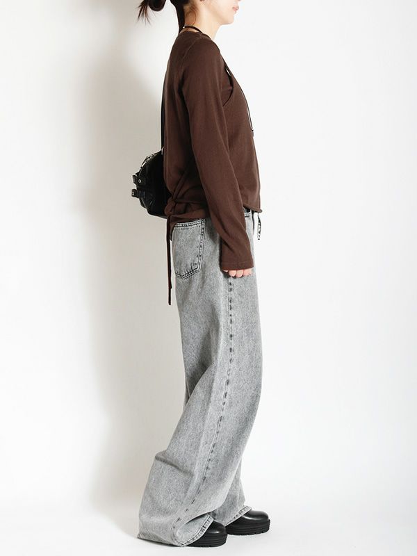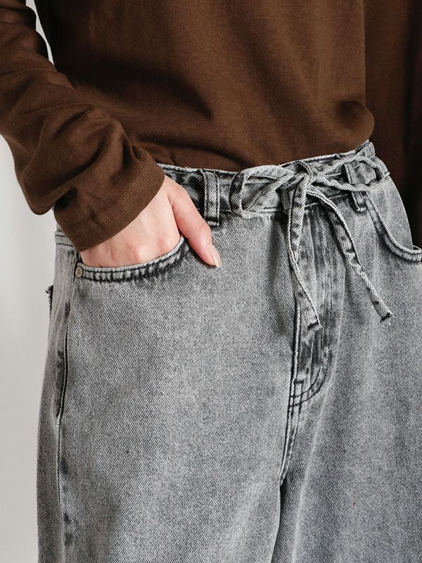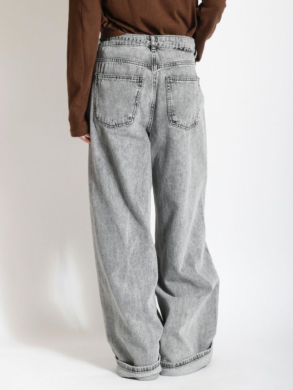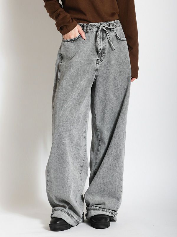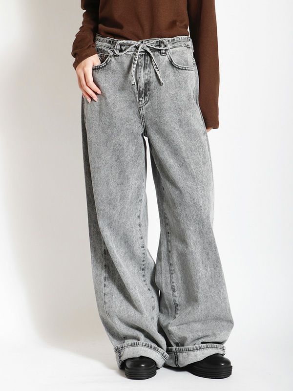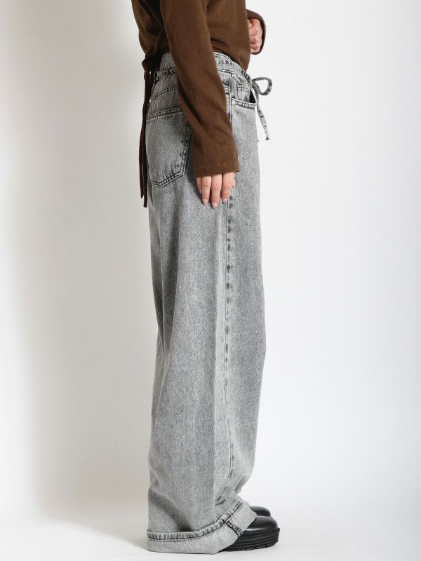加工感たっぷりのデニムパンツ。ウエストのドロストがポイント。レギュラーオンスで程よい厚みのデニムで今からはもちろん、シーズンレスで活躍する万能アイテムです。シンプルなストレートラインなので、どんなトップスにも合わせる事が出来るシルエット。ブラックデニムにケミカル加工で色ムラを出した、おしゃれでモードな印象のグレーでスタイリングのアクセントになるデニムパンツです。