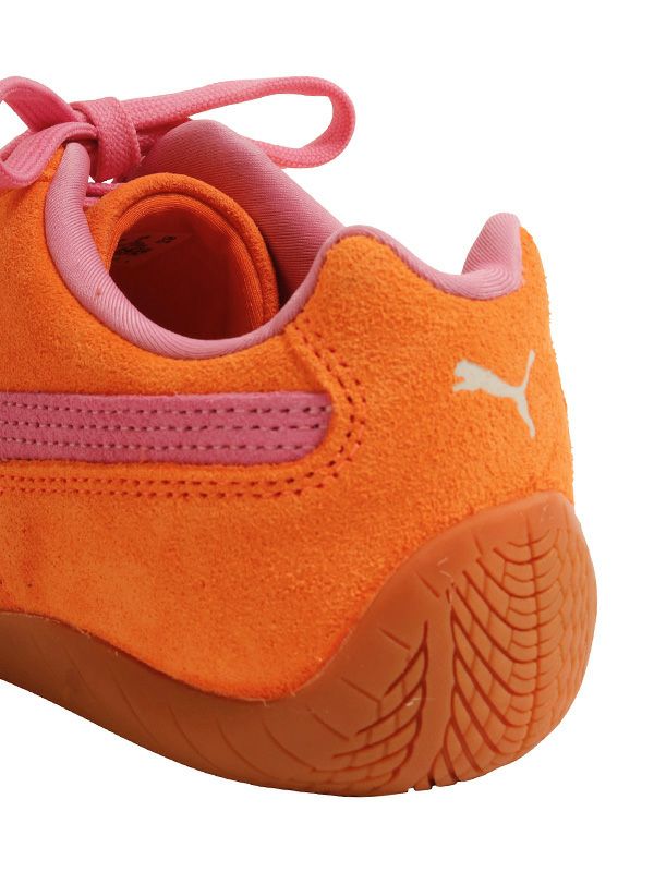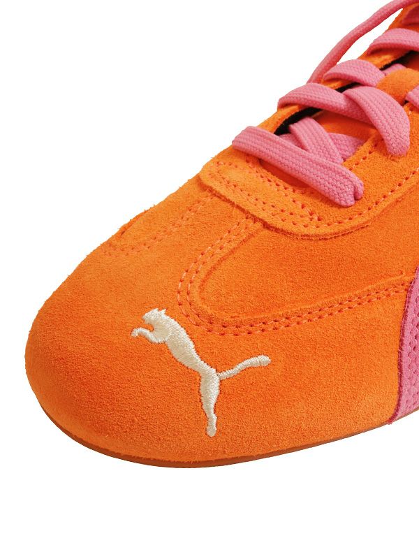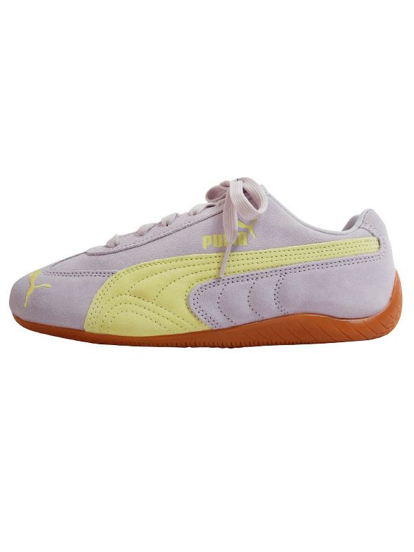 トラックレースのスピードにインスパイアされた、プーマスピードキャットOG。スピードキャットは、1999年に誕生し、80年代から90年代にかけてF1グランプリのドライバーが履いていたレーシングシューズをベースにしたライフスタイルシューズです。今回、再びリリースされるスピードキャットOGは、F1レーシングチームを彷彿とさせる豊富なカラー展開とスウェード素材をふんだんに使用した仕上がりとなっています。2000年代初頭のレーシングウェアに敬意を表し、つま先には“プーマキャット”の刺繍が施され、シュータンとフォームストリップの上にはゴールドのロゴがあしらわれています。