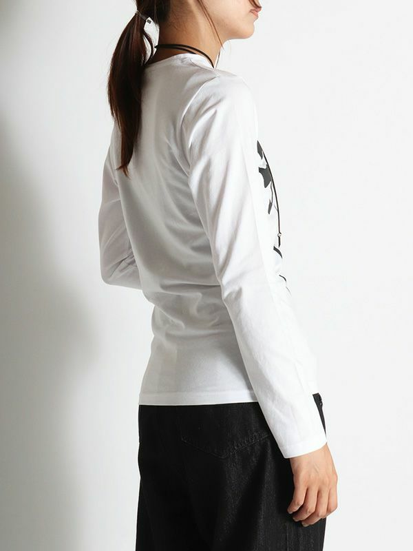 BLACK SCORE(ブラックスコア)から届いた新作のロングスリーブTシャツ。あの有名ラグジュアリーブランドのロゴをプロペラのように配置したユニークなグラフィックに注目です。新作のボディは程よくフィットするコンパクトなサイズ感。カラーはどんなスタイルにも合わせやすいWHITEとBLACKの2色展開です。通常のロゴTシャツでは物足りない、インパクトがあるデザインがお好きな方にもおすすめです。