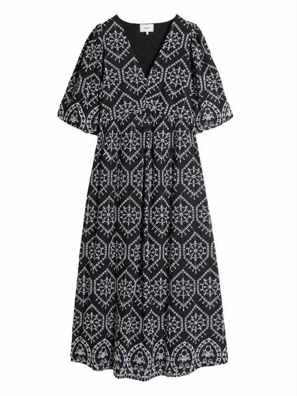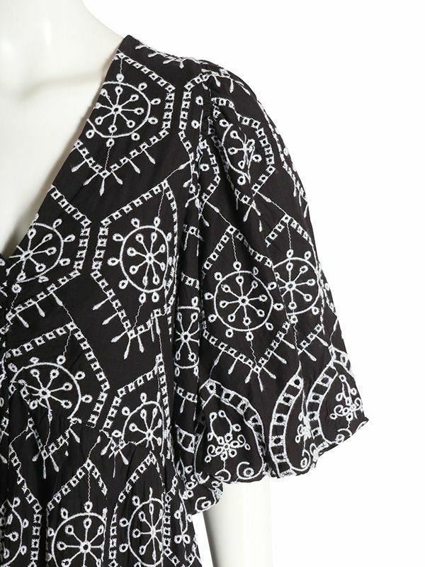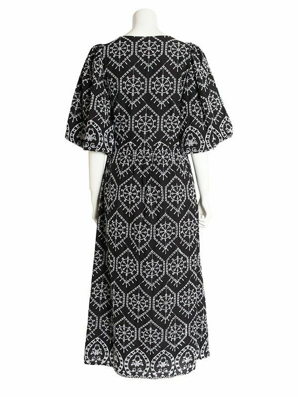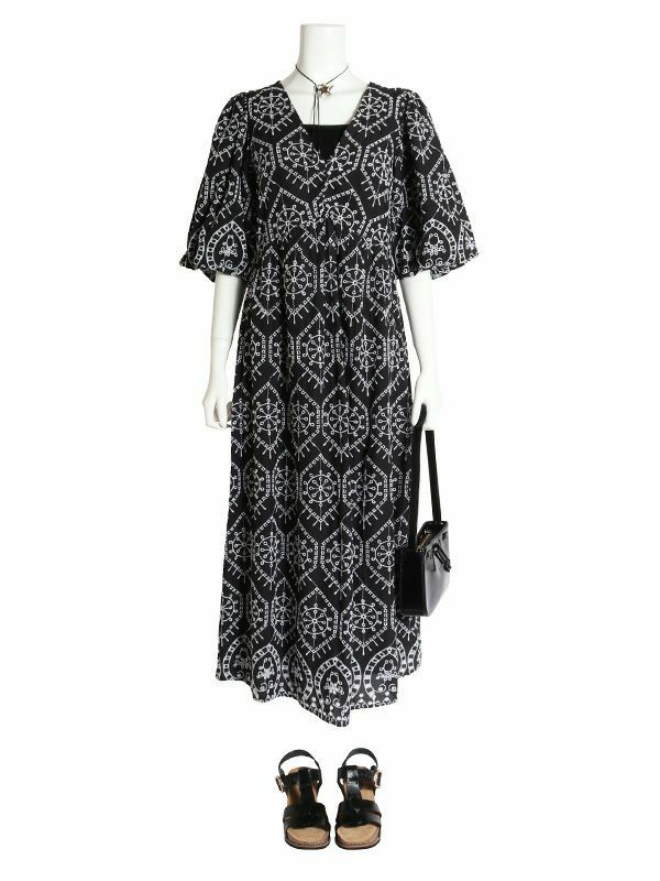 爽やかな綿100%素材に、配色で大胆刺繍が施されたセミフレアシルエットのワンピース。たっぷりギャザーを寄せたボリュームスリーブとデコルテのキレイ見えを叶えるVネックが女性らしいデザイン。ウエストラインやヒップラインを拾わないゆったりとしたサイズ感で、締め付けのない楽な着心地が叶います。華やかなノスタルジックな印象で1枚着や、レイヤードスタイルもお楽しみいただける大人のロマンティックムードを叶えるワンピースです。