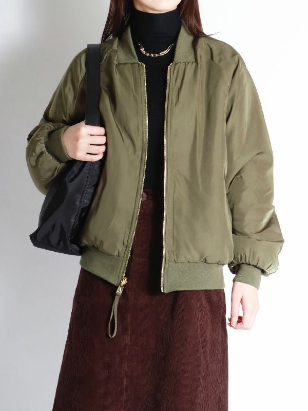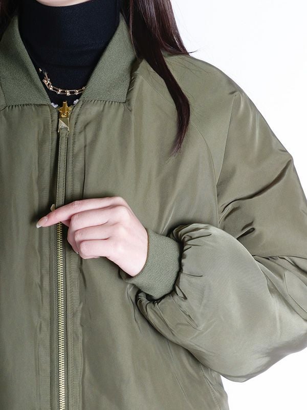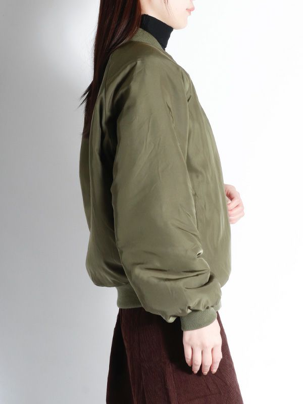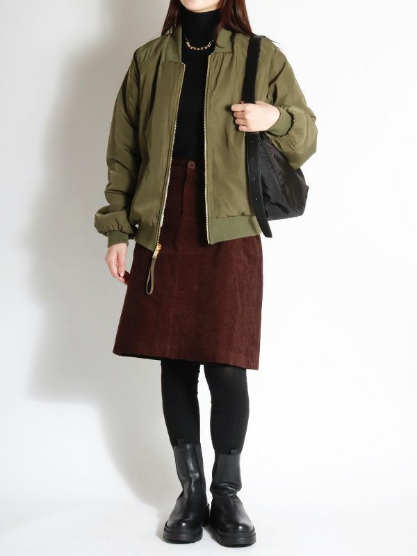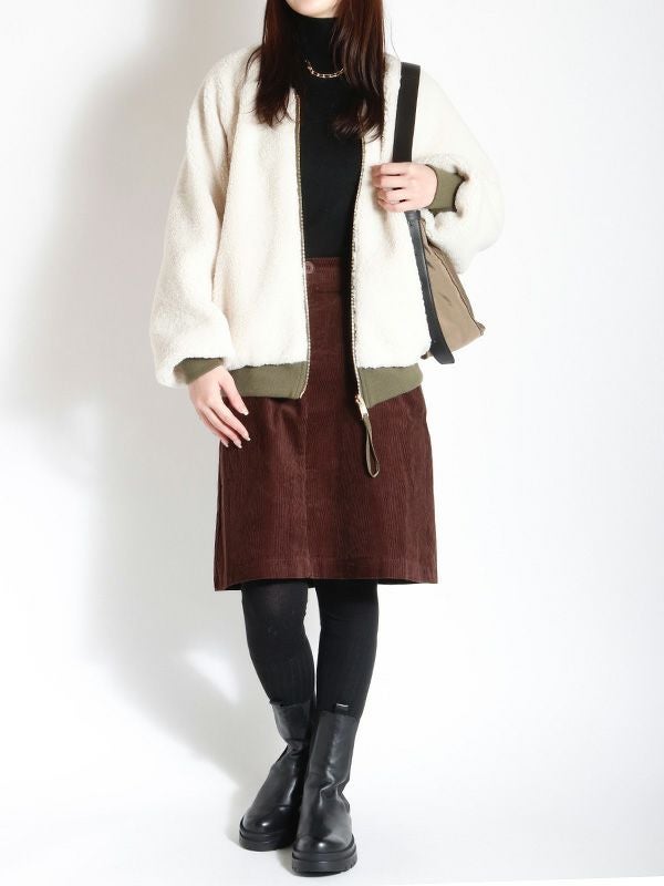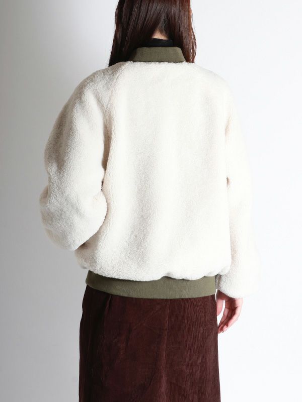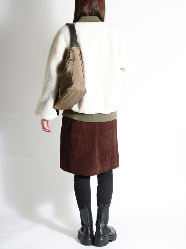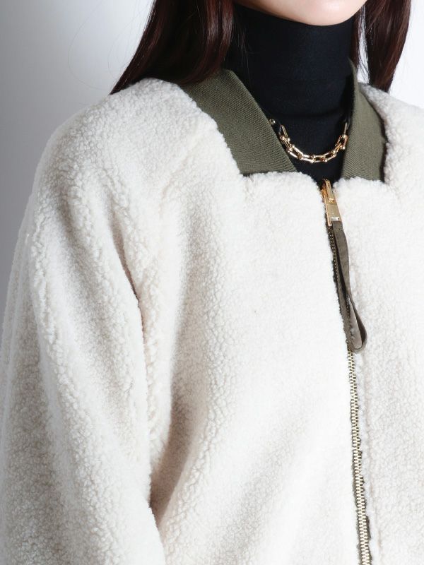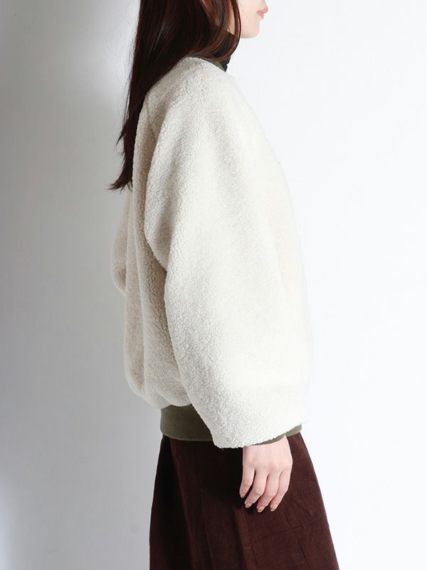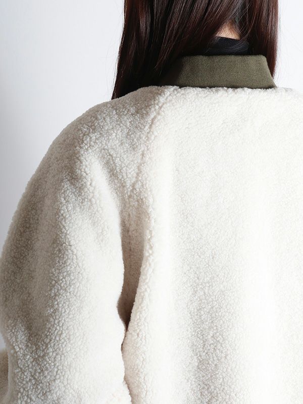 裏表で異なる表情を楽しめるリバーシブル仕様のMA-1ブルゾン。MA-1を表にするとミニマルなデザインとリブ襟の前中心に隙間を持たせたスッキリとしたネックラインで、ハードになりすぎず大人っぽい印象に。内側はボアなので暖かさも感じられます。ボアを表にすると、カジュアルな雰囲気に。その日の気分やスタイリングに合わせて、印象をガラッと変えて裏表を簡単に変えられるのが最大の魅力。きれいめなパンツやスカートと合わせてクールに、デニムやワイドパンツと合わせてリラックス感のあるスタイルと幅広い着こなしが楽しめます。
