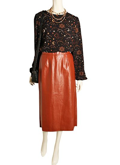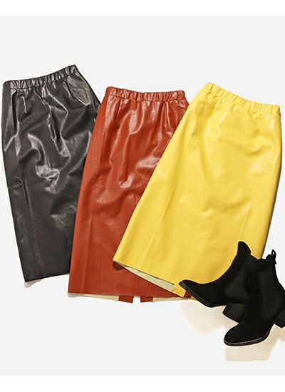 今季トレンドのフェイクレザーのストレートシルエットのスカートは動きやすさも履きやすさも◎。ニットやカジュアルなスウェットなどをより旬なスタイリングへと導きます。コーデに取り入れるだけでグッとオシャレな着こなしに。
