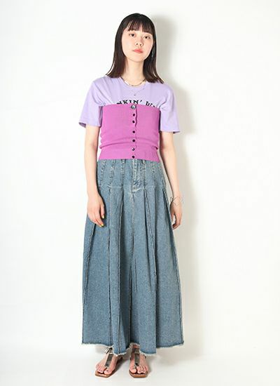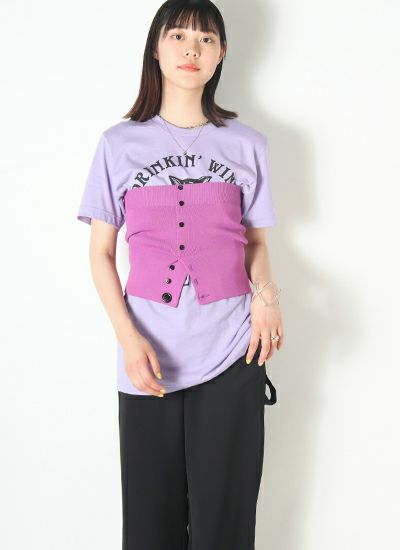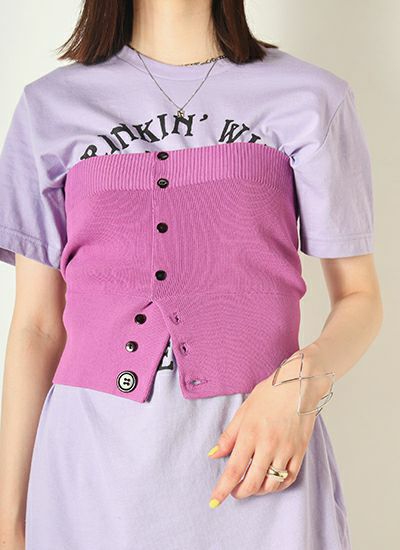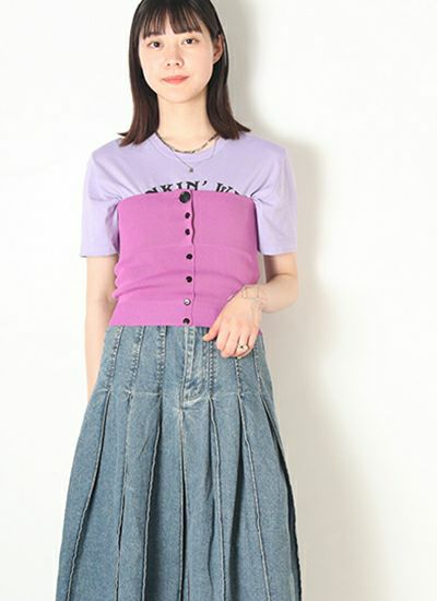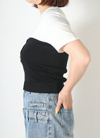 トレンドになっている筒形ビスティエ。前後、上下どの着方も楽しめるデザインに仕上げているので、ハードルの高いビスティエも、Tシャツやシャツ・ワンピースなどに合わせるとモードでトレンド感のあるレイヤードスタイルが完成します。今季の旬コーデに仕上げてくれるマストアイテムです。