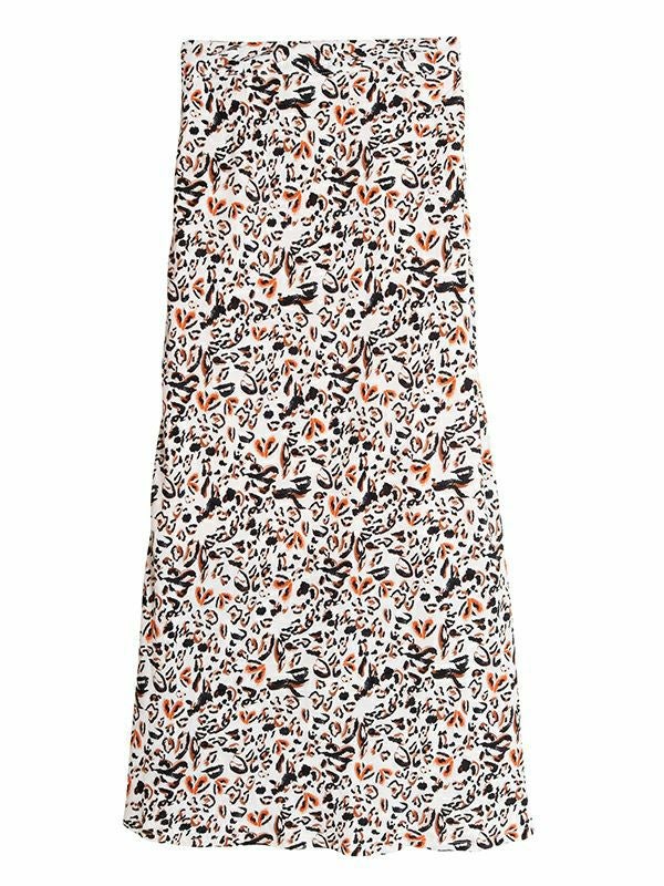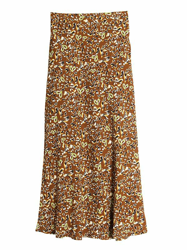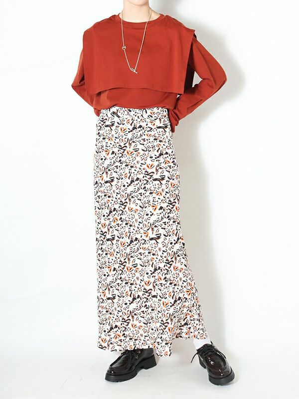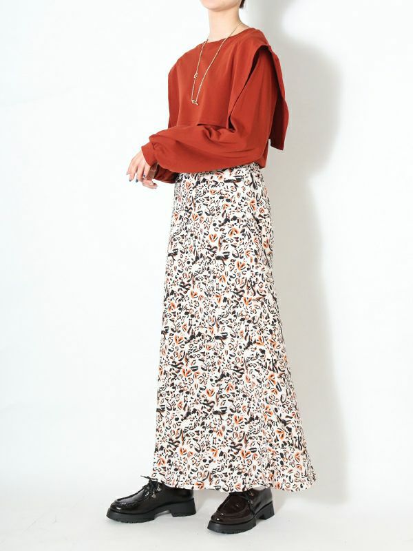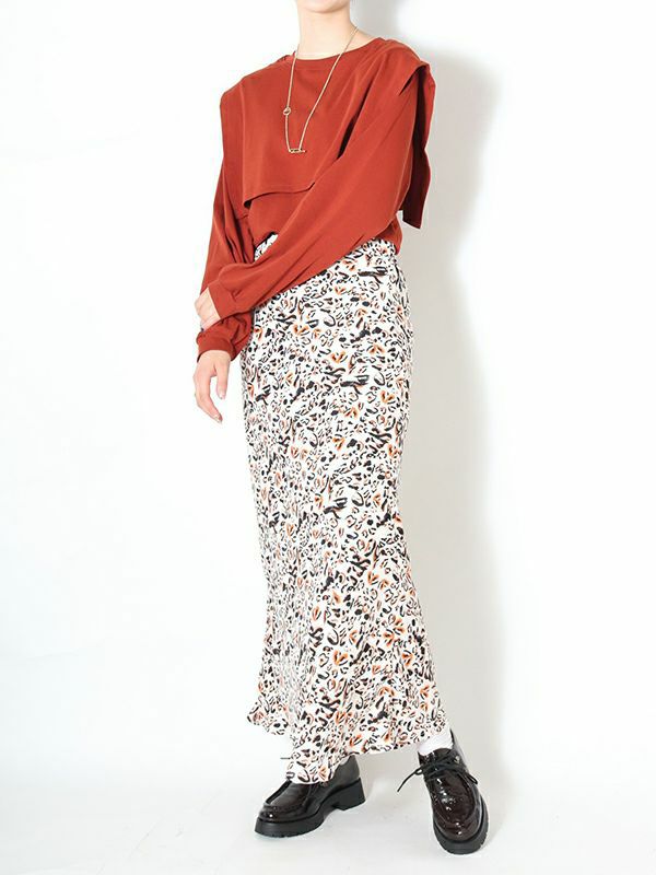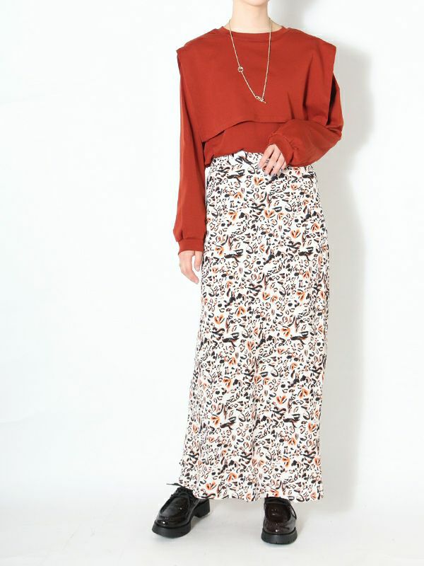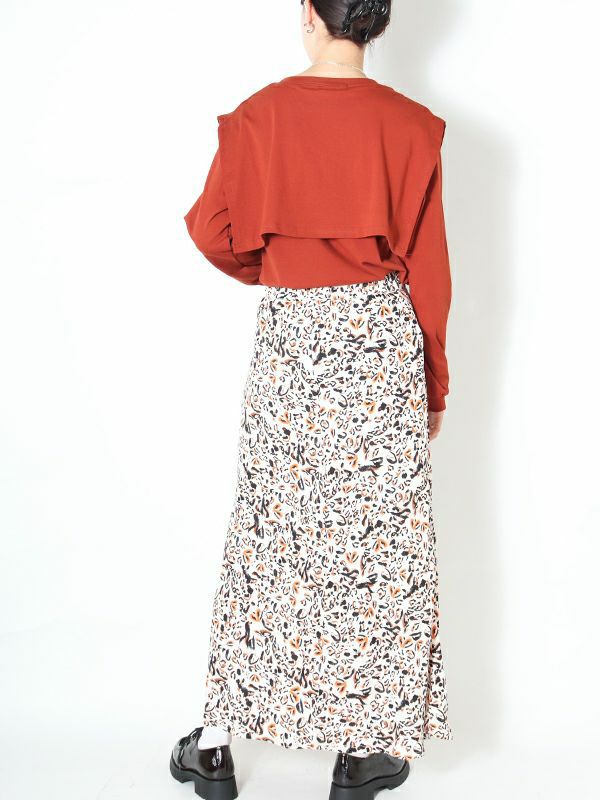 多彩なレオパード柄がインパクトがあり、コーデのポイントになるロングスカート。裾にかけて広がるナローシルエットで、後ろウエストがゴムになって履き心地も良いです。トップスにはシンプルなカットソーやニットなどの合わせがおすすめです。裏地もついているので、安心して履いていただけます。