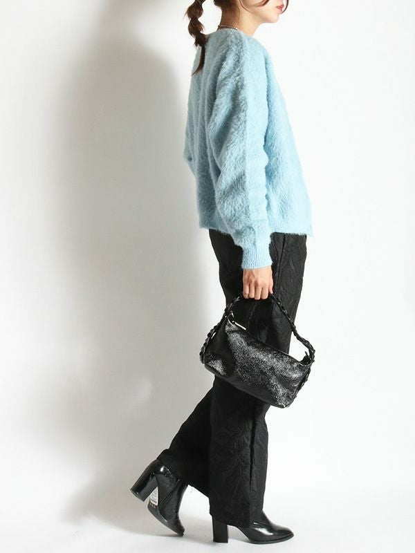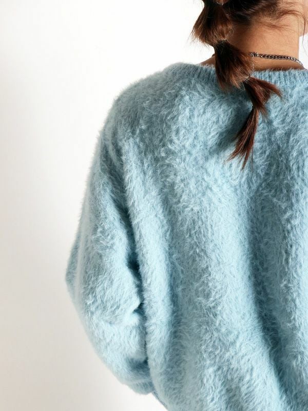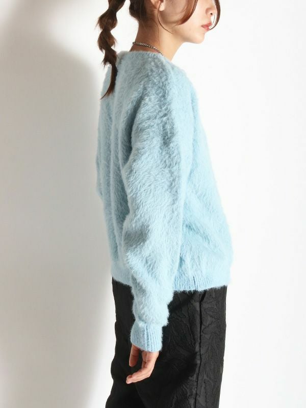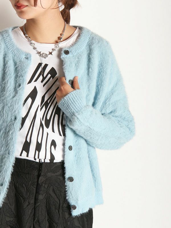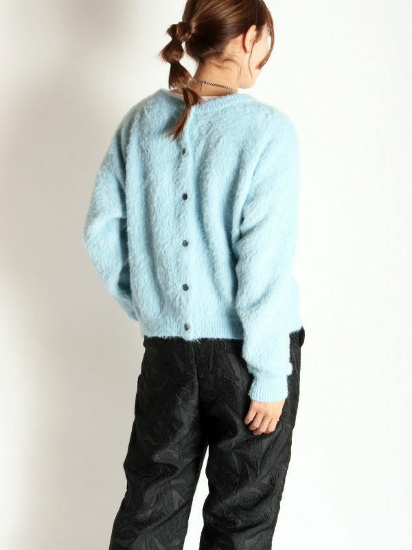 トレンド感のあるふんわりとしたシャギーニットを採用したカーディガン。配色のボタンがアクセントをプラスします。前後2WAYでの着用が可能で、ボタンを閉めバックスタイルのアクセントにするのもおすすめ◎。きれいめアイテムと合わせたコーデはもちろん、デニムなどのカジュアルスタイルにもマッチします。単品でも存在感があり、シンプルなボトムスと合わせるだけで洗練された印象を与えます。軽やかで心地よい着心地を実現し、チクチク感がないのも嬉しいポイントです。