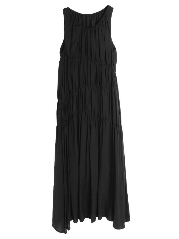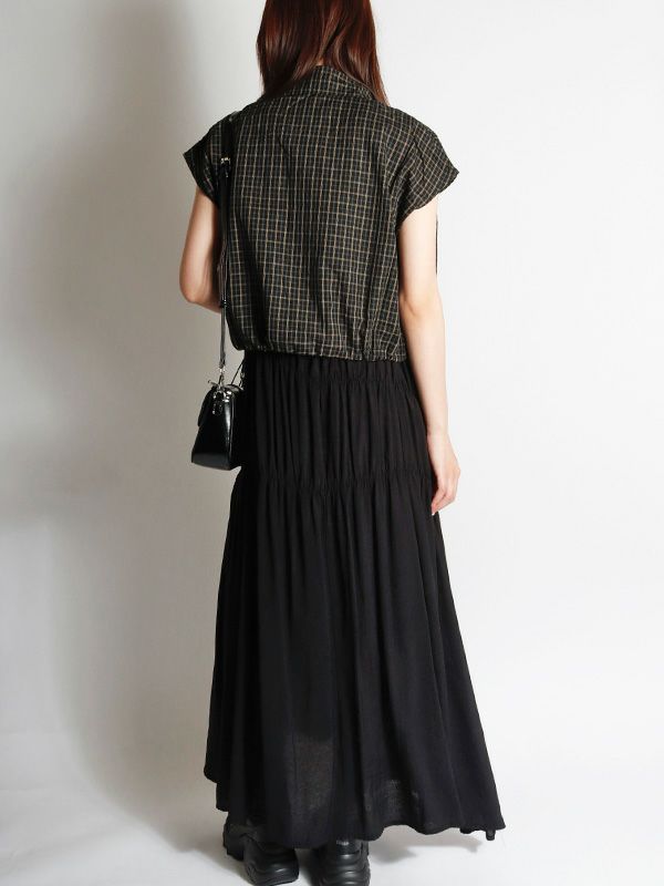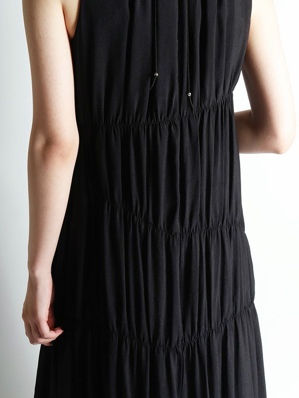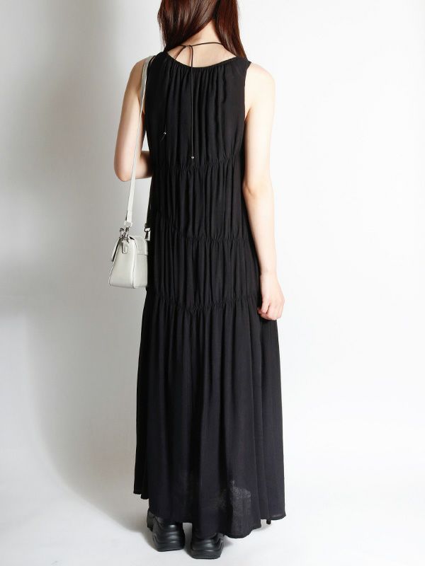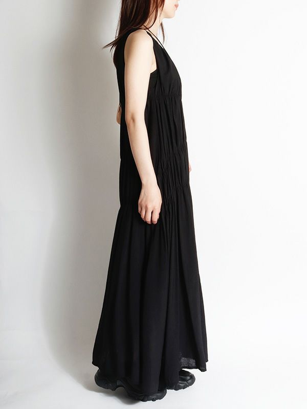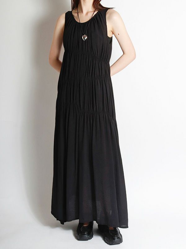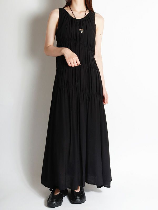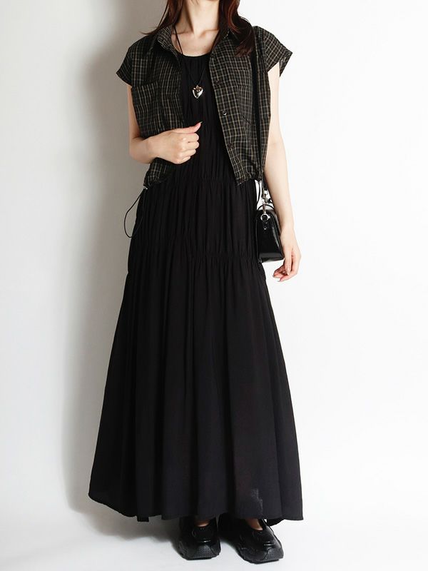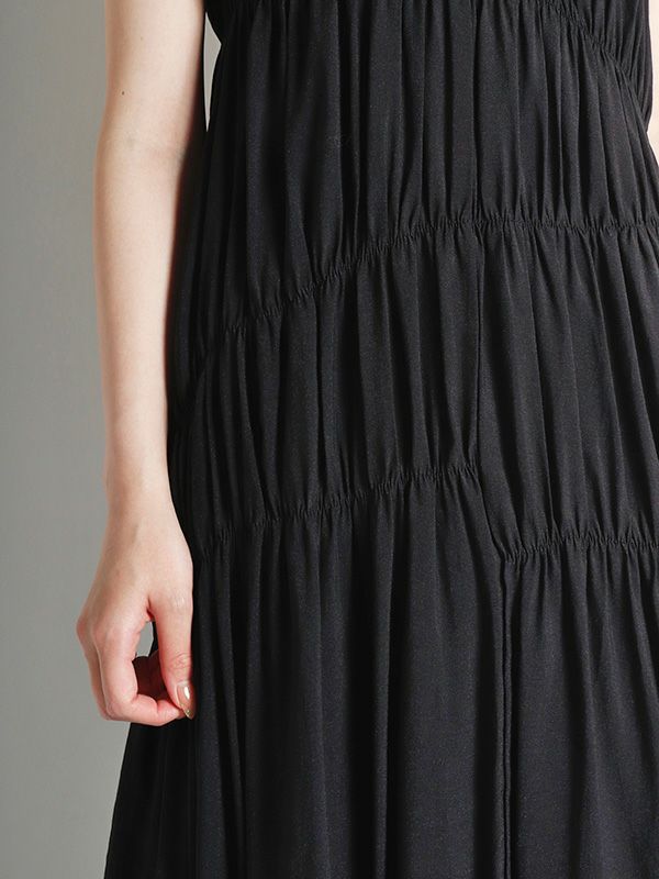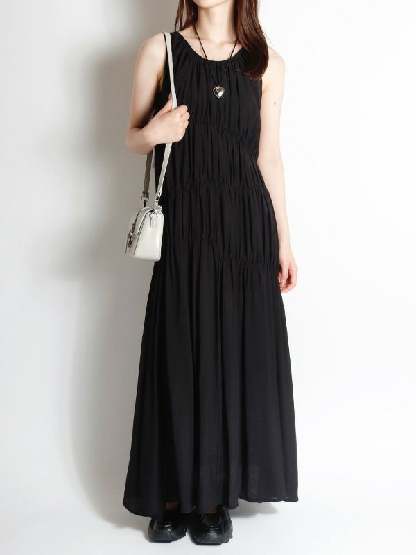 フロントに大きく施したシャーリングデザインがポイントのワンピース。コンパクトなトップスから裾にむけてふんわりと広がる女性らしいシルエットが魅力で、スタイルアップ効果も叶うアイテムです。1枚でももちろん、Tシャツやシアーインナーや寒くなったらリブタートルなどを合わせたレイヤードスタイルがおすすめ。インナー次第でコーディネートの幅が広がり、ロングシーズン着ていただける嬉しいアイテムです。