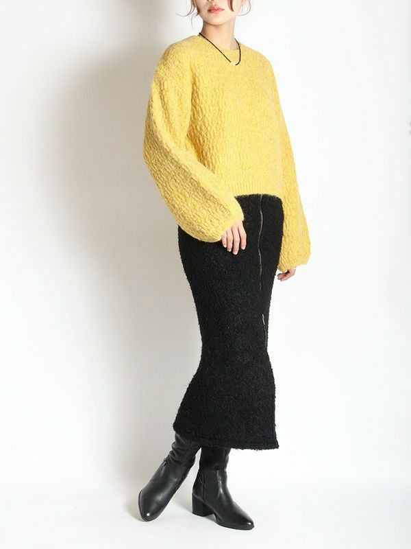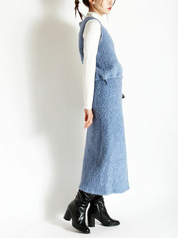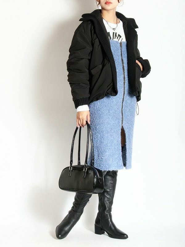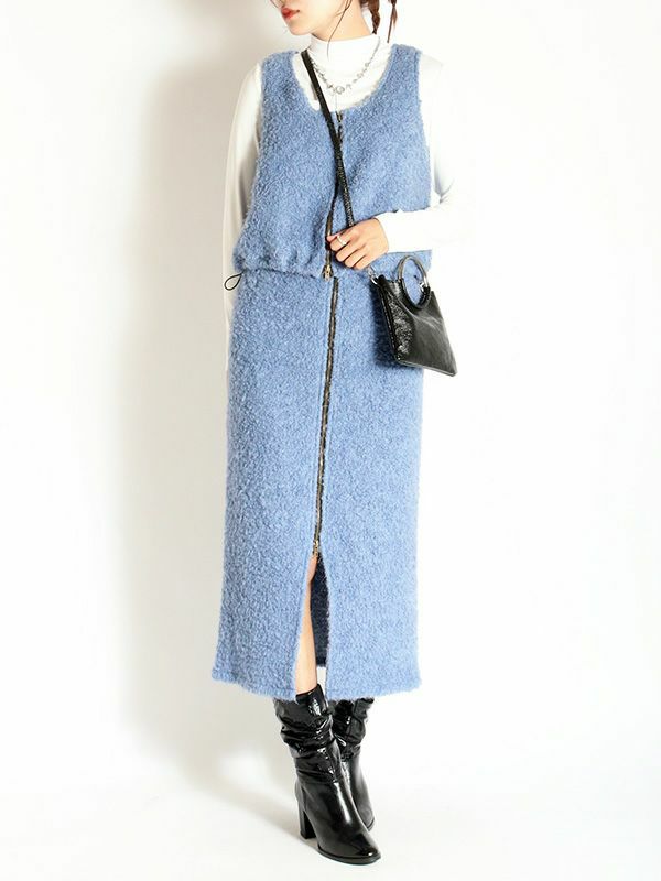 ふわふわとした素材が惹きつける存在感抜群で華やかな印象のボアスカート。合わせるだけでおしゃれな着こなしを叶えるコーデをアップデート。着用位置を変えてスカートとベアトップどちらでも着用可能です。また、ファスナーを後ろ側にしてシンプルな着方も可能。ぱっと目を惹くデザイン性ながら、ウエストは総ゴム仕様。トレンドを押さえつつストレスフリーの着心地を両立しました。カジュアルなスウェットなどのアイテムとも相性抜群◎同素材のベストと合わせたワンピースのような着こなしもおススメです。
