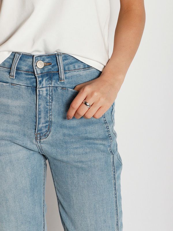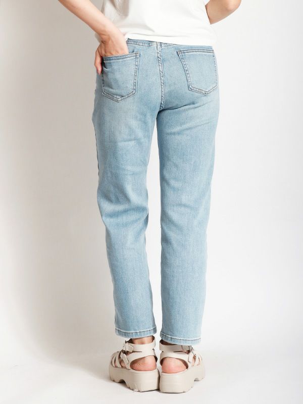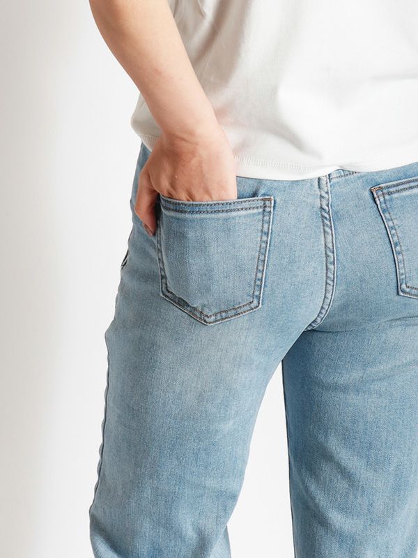 クラシックなカプリパンツデザインに現代的なニュアンスを取り入れた1本。太すぎず細すぎない、絶妙なシルエット。美脚効果も抜群です。ラフなカットソーを合わせたカジュアルなスタイルだけでなく、シャツやブラウスと合わせたきれいめコーディネートなど幅広いスタイルに対応可能です。伸縮性の効いたデニム生地は柔らかく履き心地抜群。ポケットの向きを平行に整え、より美しいラインにこだわったひと品です。