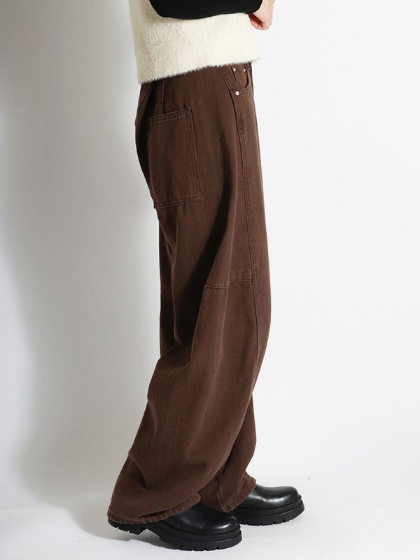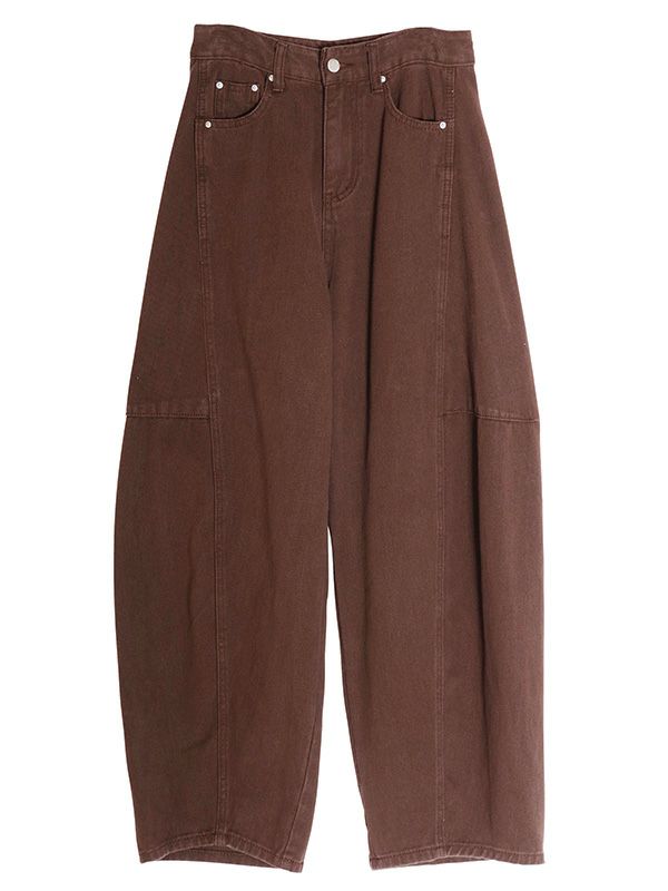 絶妙な太さできれいな落ち感が魅力のバルーンデニム。ボリュームのある立体的なカーブを描いたシルエットでダボっとした雰囲気は残しつつも、サイドに入れた切り替えによってこなれ感を演出してくれます。ひと味違った雰囲気で着用することができるデニムパンツ。