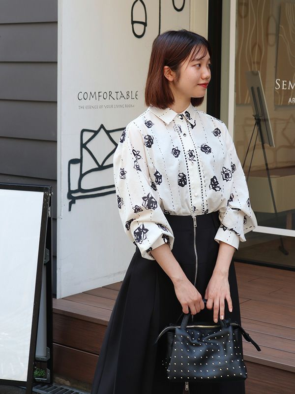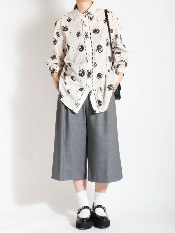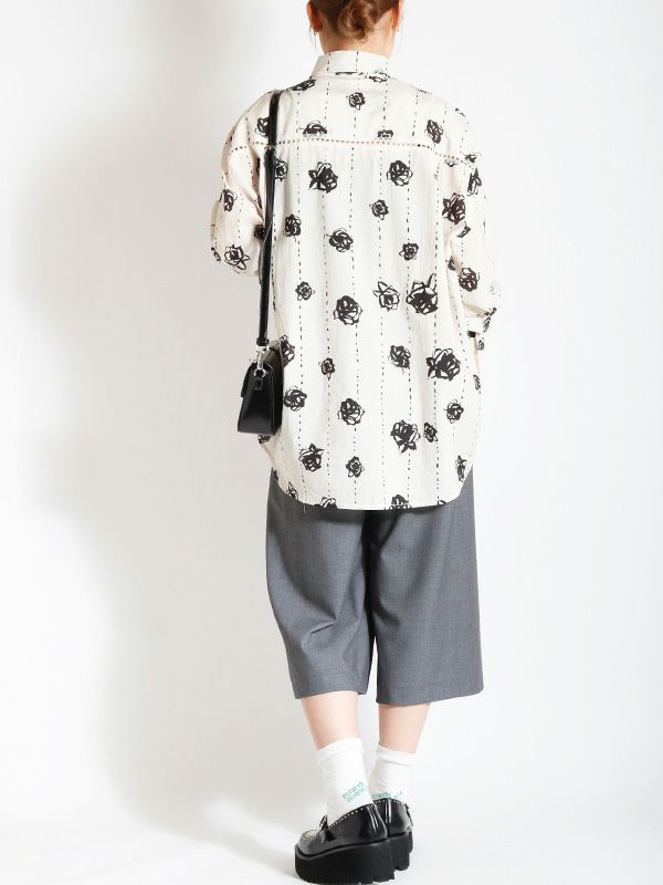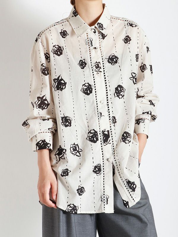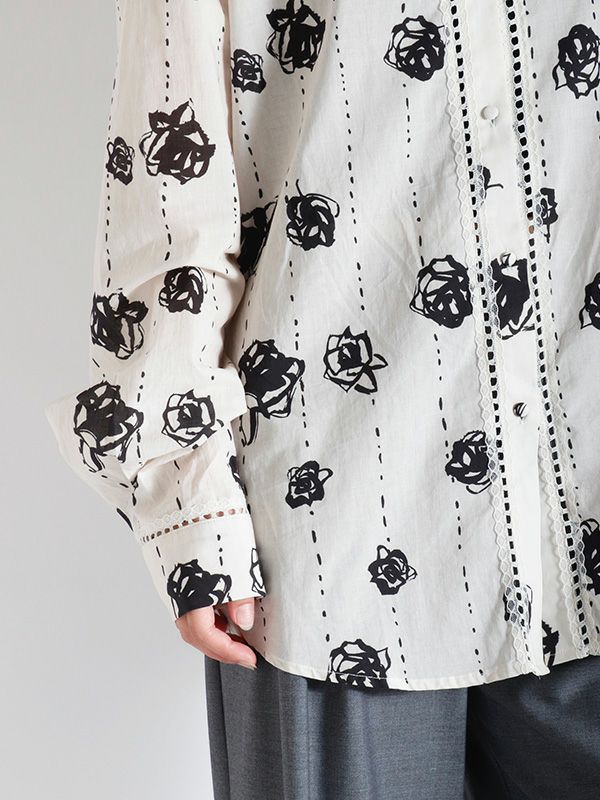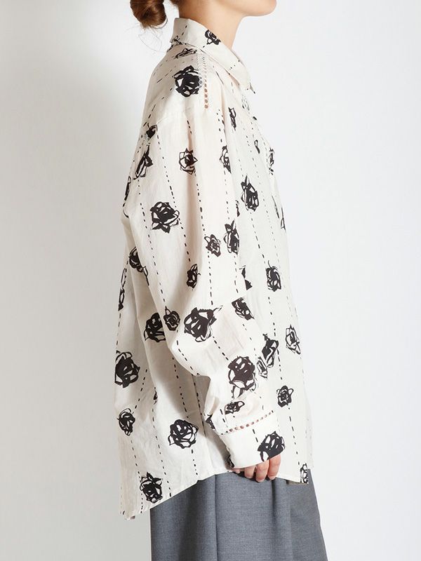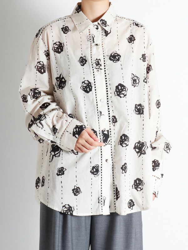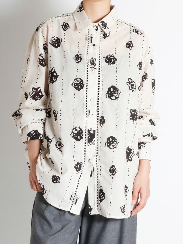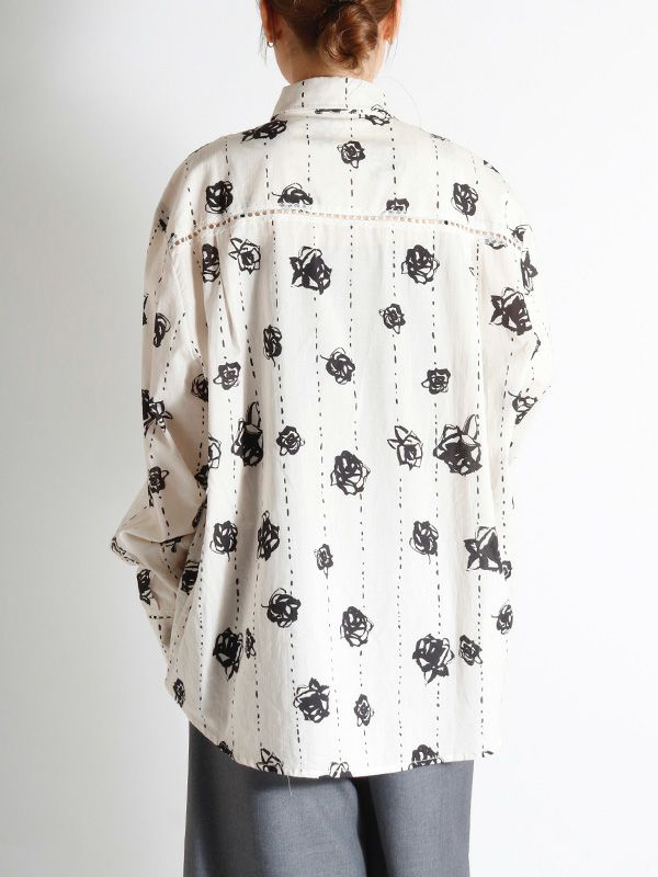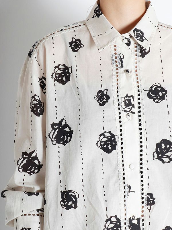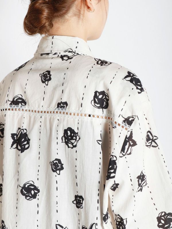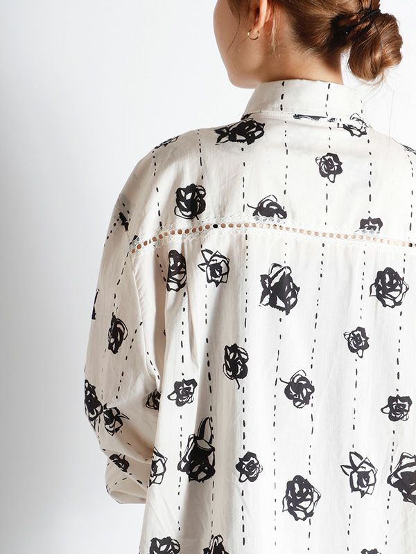 メンズライクなオーバーシャツデザインに花柄プリントとレースでフェミニンさをプラスしたデザインシャツ。身体のラインを拾わないリラックスした着心地。ドレスシャツとは一線を画す、肩の力を抜いたデザインは、普段使いからちょっとしたお出かけまで、幅広いシーンで活躍するユーティリティ性の高いひと品です。1枚ではもちろん、羽織りとしてもシャツを主役にしたコーディネートがおすすめ。力の抜けた大人のカジュアルスタイルを演出する、クラシックシャツです。