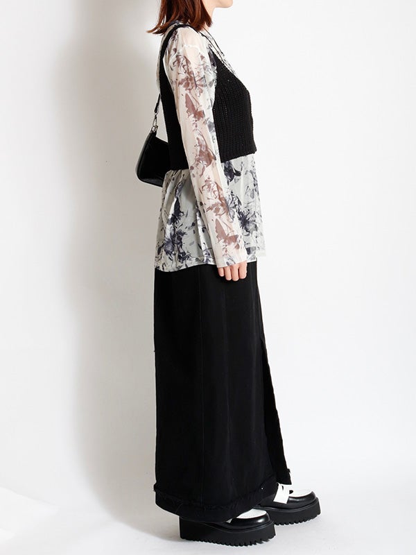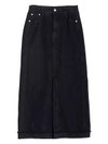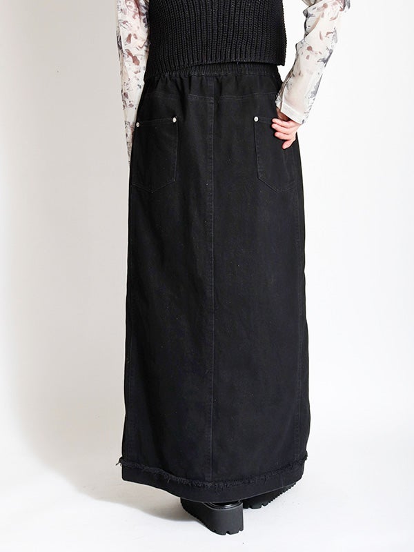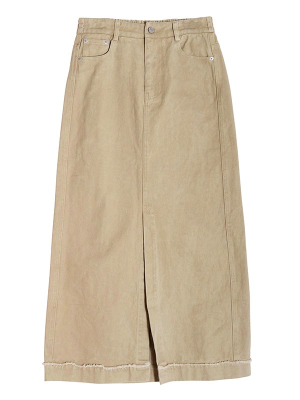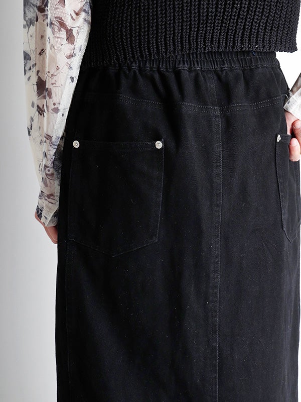 Iラインを強調するすっきりとしたタイトシルエットのデニムスカートが登場。後ろウエストがゴム仕様xフロントスリット入りで足捌きも良く快適な履き心地です。程よい厚みで、1年を通してワードローブの主役として活躍します。オーバーサイズのTシャツやスウェットなど上半身をあえてルーズにすることで、タイトスカートとのコントラストが生まれ、こなれた印象に。シアー感のあるブラウスや身体にフィットするリブニットのようなアイテムと合わせて洗練された仕上がりも◎。