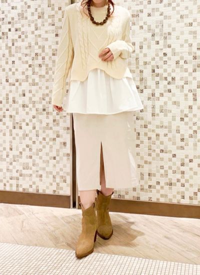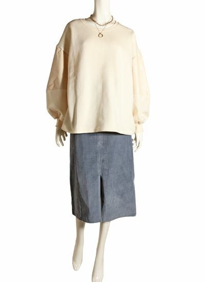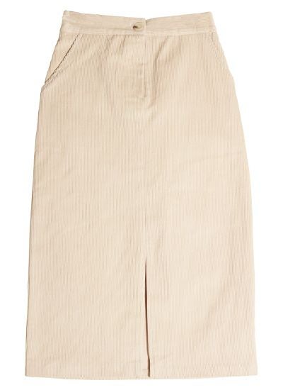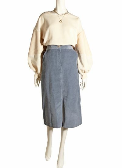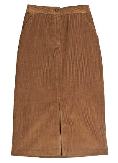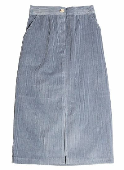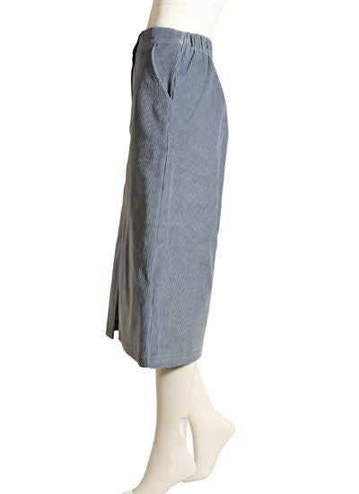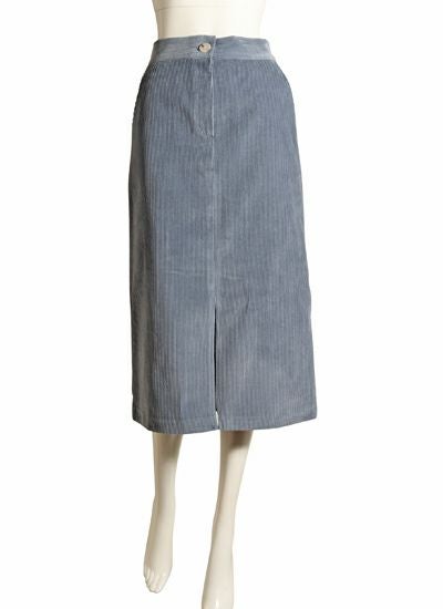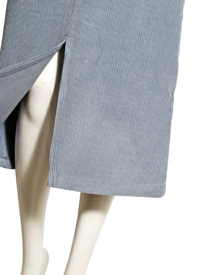 コーデュロイを使用したセミタイトスカート☆フロントにはスリットがしっかり入っている為、足さばきもOK! 丈はミモレ丈で女性らしい印象を際立ててくれます♪シンプルなデザインと柔らかなカラーリングなので幅広く活躍しそう♡