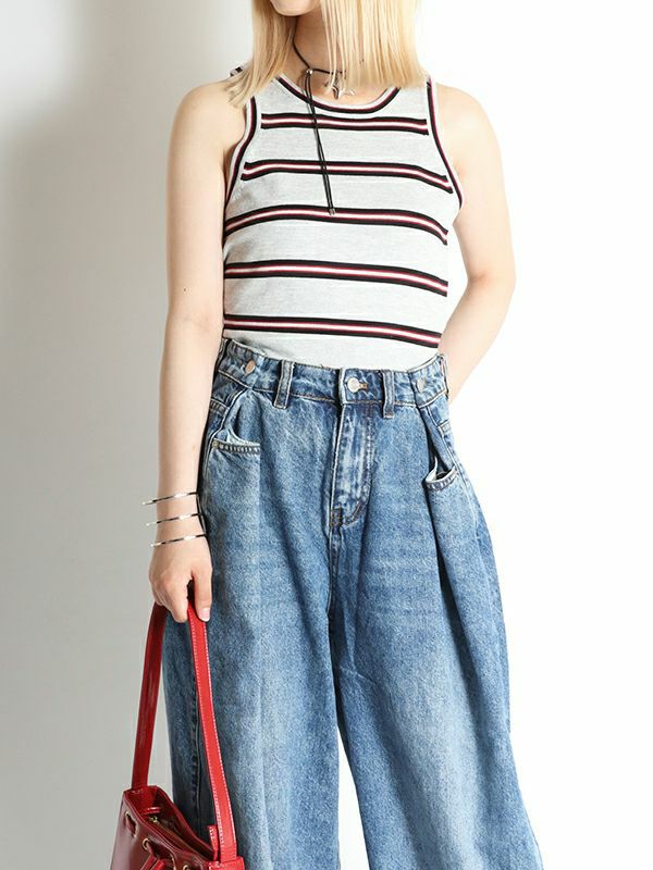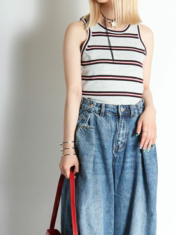 デイリーシーンで活躍するベーシックなデザインのタンクトップ。プレッピーなストライプとシンプルなデザインが魅力です。シャツやカーディガンとのレイヤードはもちろん、ジャケットやワンピースのインナーとしても映えるアイテム。真夏でもさらっとした快適な着心地を叶えてくれます。ネックラインの広いカットソーの首元からチラリと覗かせても可愛く、色違いで揃えたくなるタンクトップです。