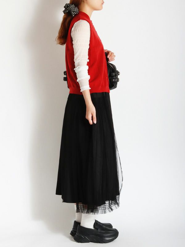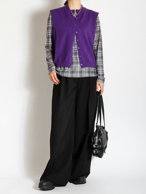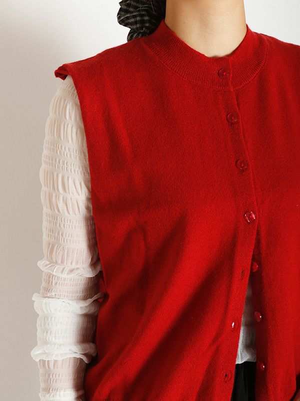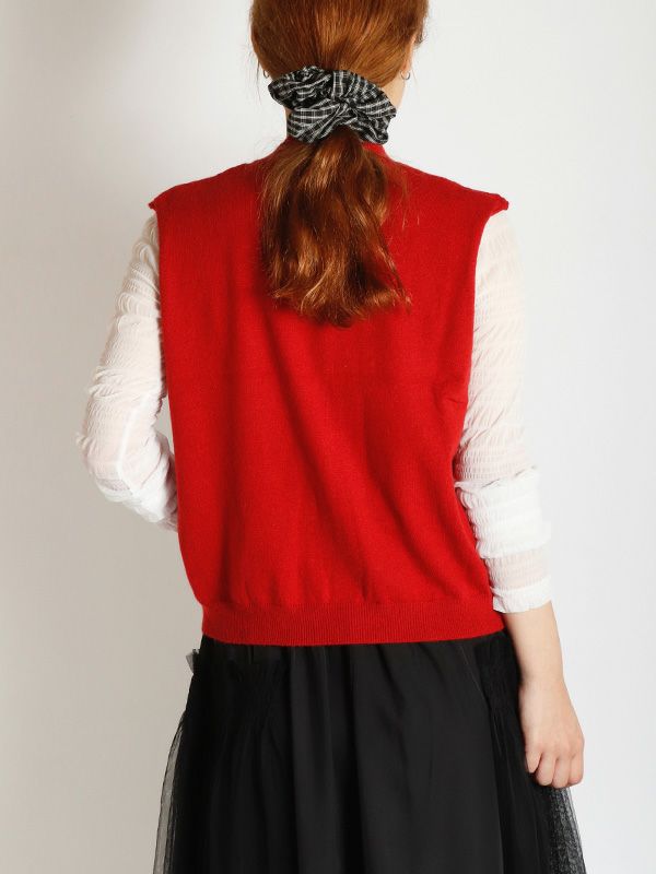 ハイゲージの編地をあえて毛羽立ちのある表面感に仕上げることで、甘すぎない大人の上品さを表現したニットベスト。シンプルなTシャツやブラウスに重ねるだけで、いつものコーディネートをワンランクアップ。デニムと合わせてカジュアルダウンしたり、きれいめなパンツやスカートと合わせてフェミニンなスタイルにも◎。ワンピースの上からレイヤードするのもおすすめです。