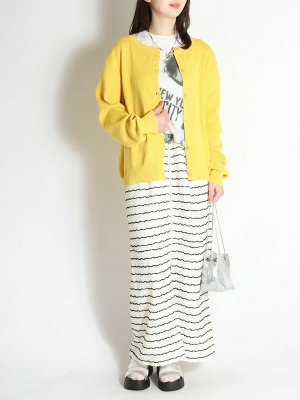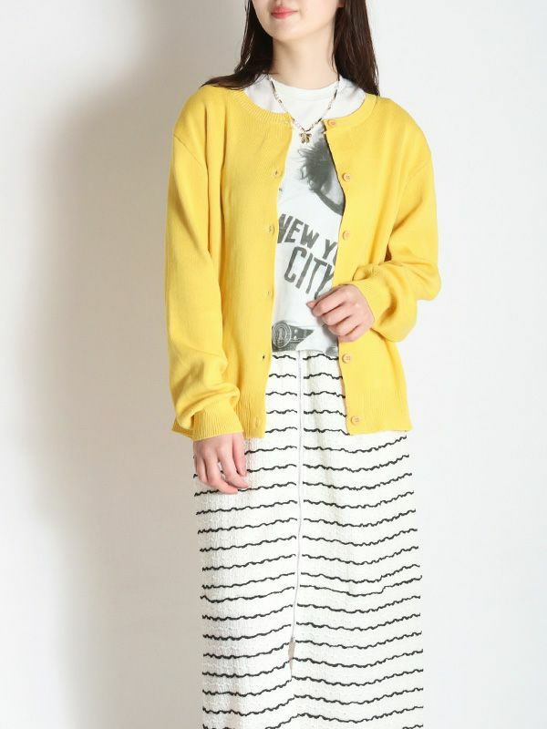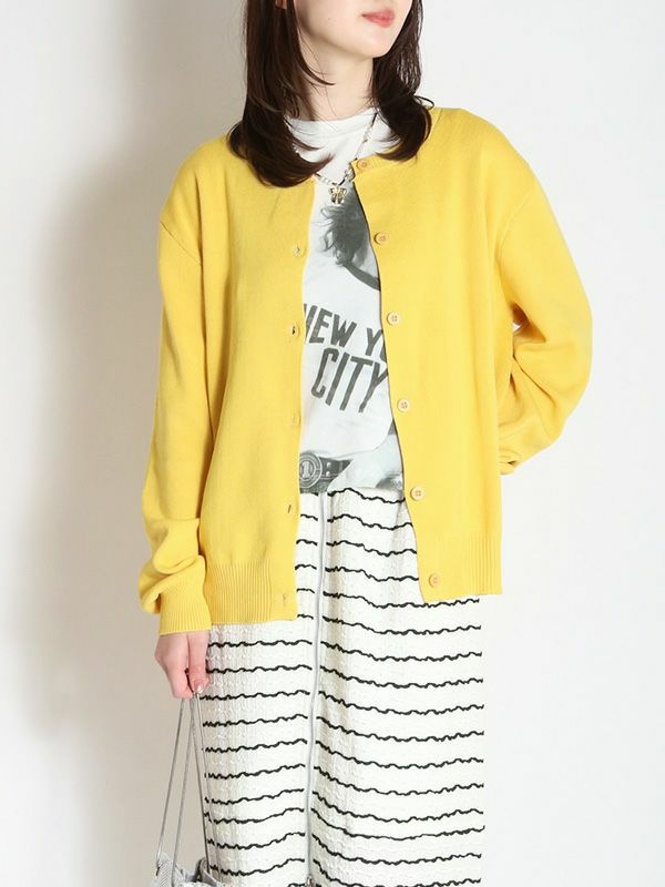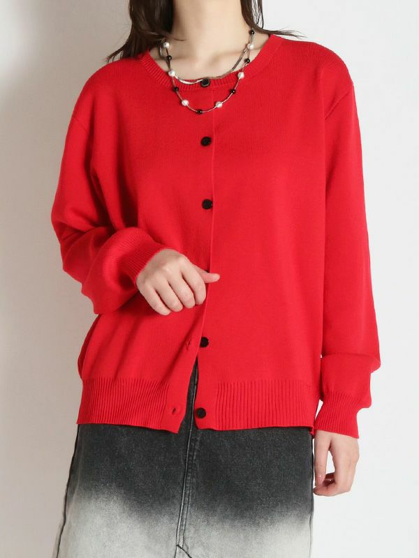 季節の変わり目に必須のスタンダードデザインのカーディガン。ベーシックなデザインながらもビビッドなカラーが特徴的です。もっちりと柔らかい質感でしっかりしており、ラウンドネックのスタンダードなデザインでコーディネートのしやすさ抜群です。1枚着でも、羽織としてももちろん、インナーとアウターの間に挟んで差し色として使うと、スタイリングがお洒落に格上げされます。程よいゆとり感でルーズすぎず女性らしく大人カジュアルな着こなしが叶います。