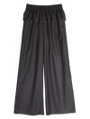 ウエスト周りにフリルを施したリラクシーな穿き心地のストレートシルエットのパンツ。スーチング素材でメンズライクな雰囲気がありながらも、パンツを穿きながらフェミニンテイストを装える「良いとこ取り」のデザイン。カットソーやTシャツと合わせても好相性です。ボディラインを拾わないシルエットと立体感。フリルのもたらすメリハリ効果で体型カバー力も期待できます。甘さを抑えたグレーとブラックの2色展開です。